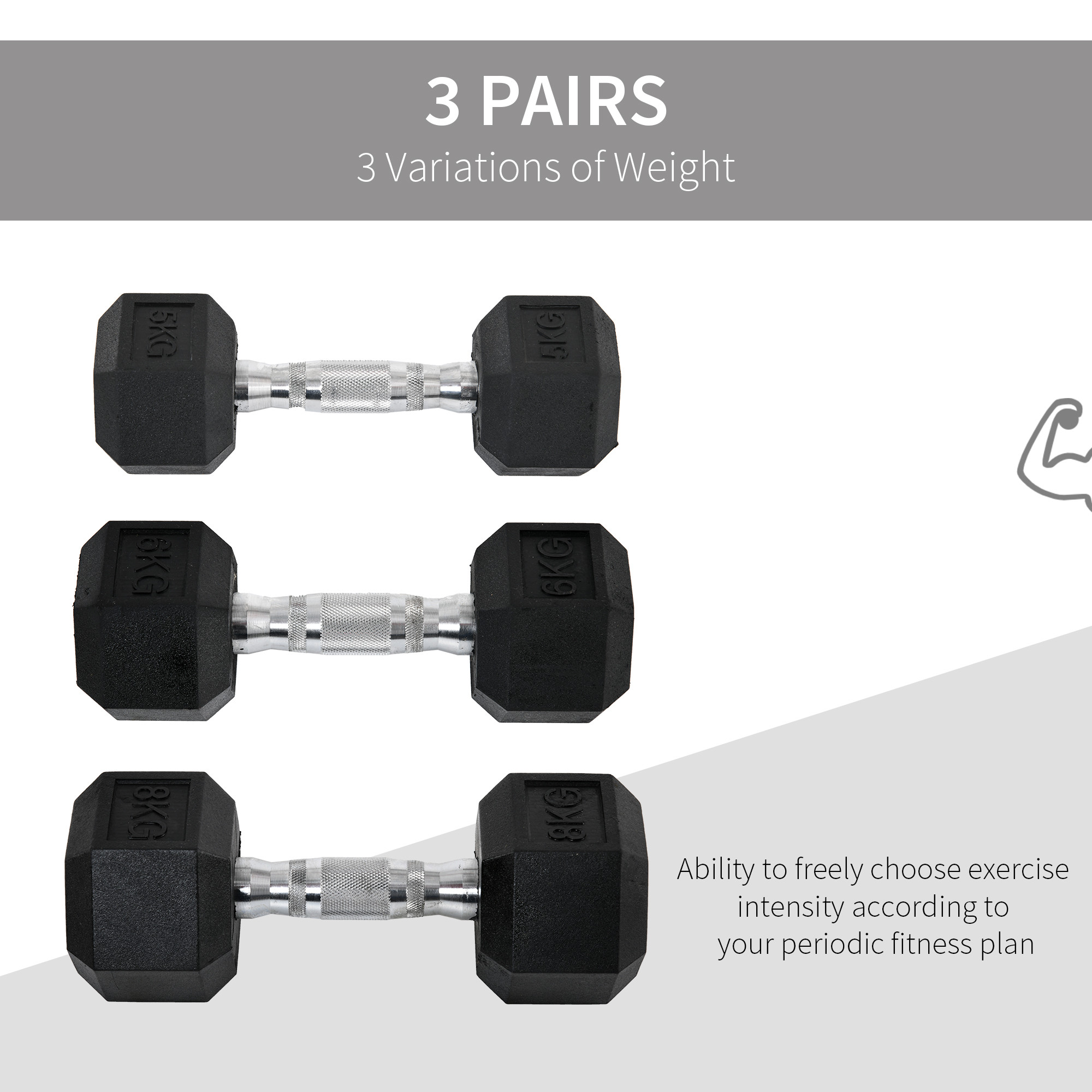 - PRODUCT INFO: Weight of Each Dumbbell Set: 2 x 5/6/8kg; Note: We suggest using it on rubber mat or fitness mat, to protect your floor and products from damage. Related Products: A93-035(AISN B07N66L5JB)