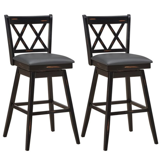 Transform your house or business place with the simple elegance and contemporary bar stool. Constructed of a solid rubber wood frame, these bar stools are strong enough to support 264 pound without wobbling. And the PVC leather cushion is filled with soft sponge to offer you comfortable and cozy seating. What's more, it can rotate 360°to bring a wider range of motion. With the waterproof PVC surface, the seat is easy to clean and care. In addition, this stool has simple structure, allowing you to install it with a few minutes. The delicate finish and sophisticated appearance makes this barstool ideal for various occasions, including living room, office, coffee shop, pub and more.
