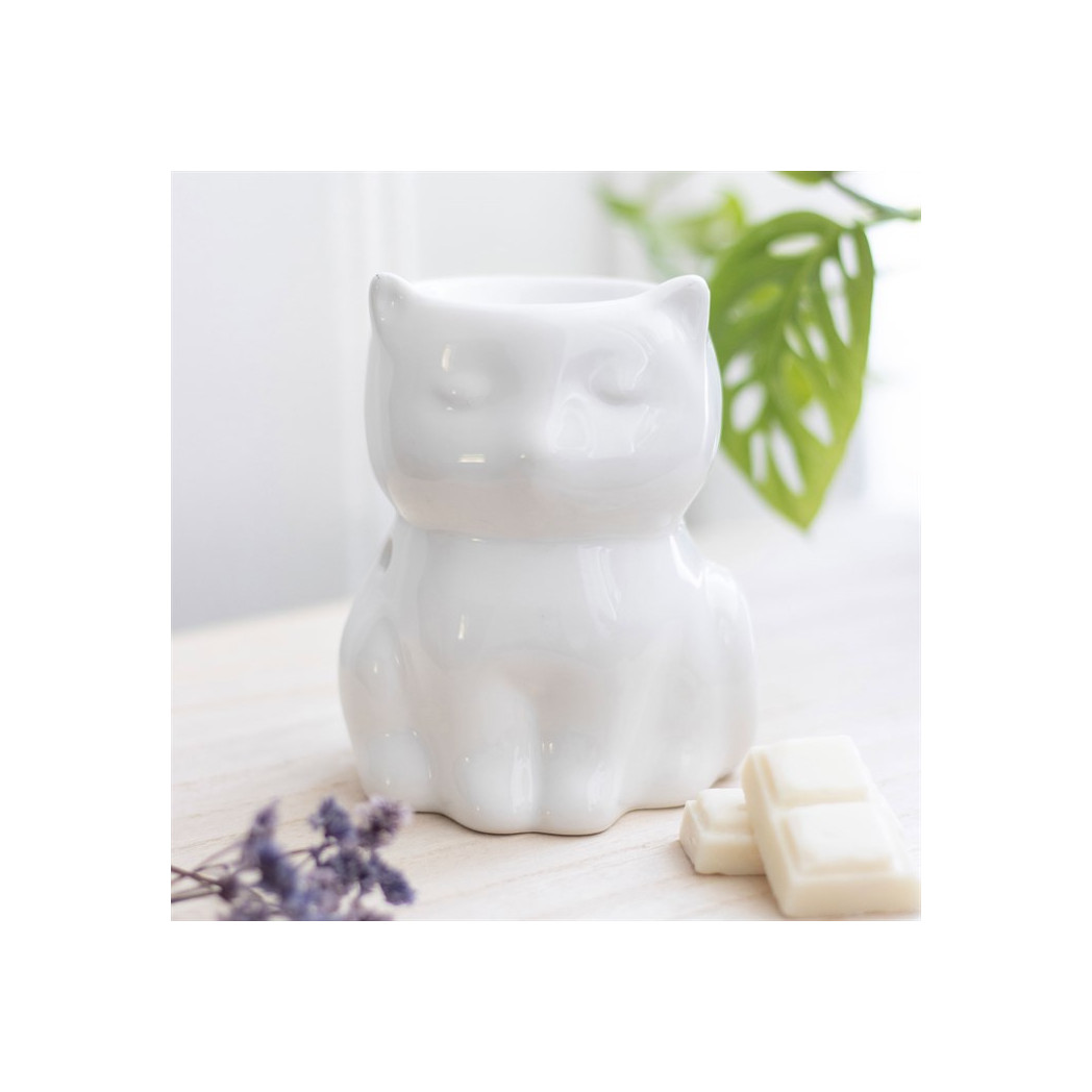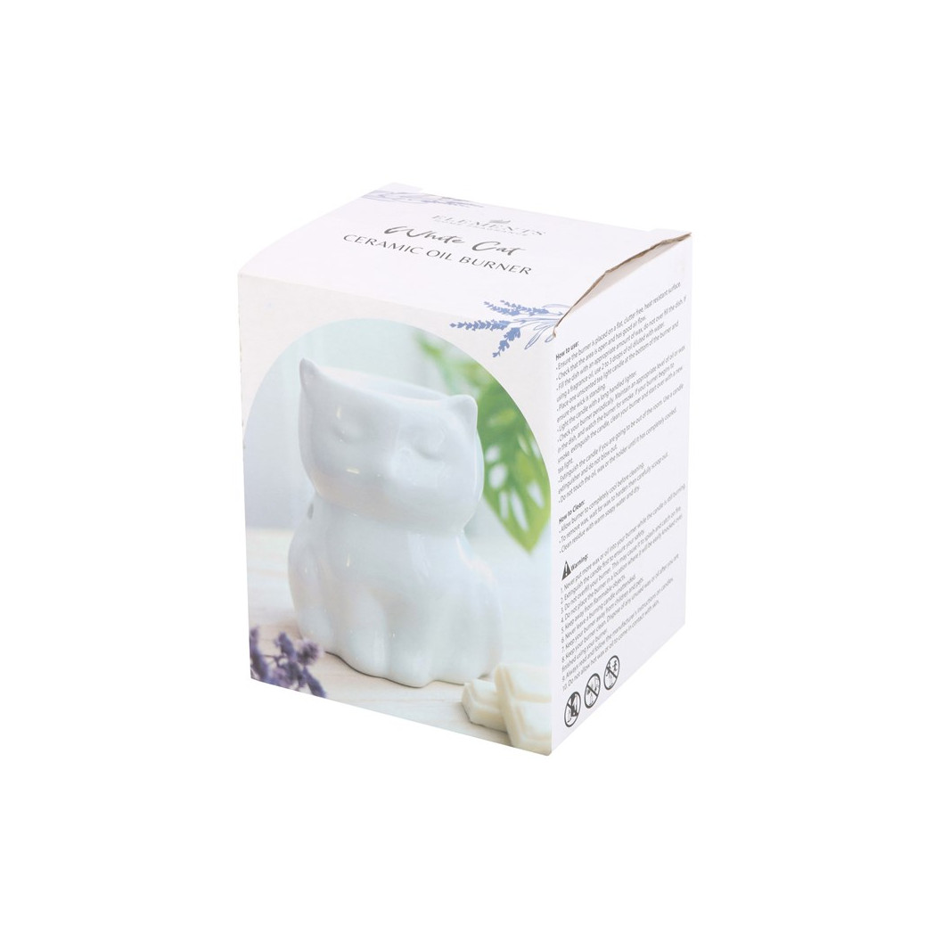 This charming white cat oil burner, a perfect gift for cat enthusiasts. When not in use, this item also looks fantastic as an ornament in the home. Recommended for use with fragrance oil diluted with water.