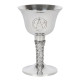 This silver metal chalice features a handcarved pentagram design and twisted vine accent along the stem. Symbolic of the goddess' womb, this shining goblet is perfect for holding wine during sacred rituals. Product Dimensions: H13cm x W9cm x D9cm Packaged Dimensions: H14cm x W9.5cm x D9.5cm