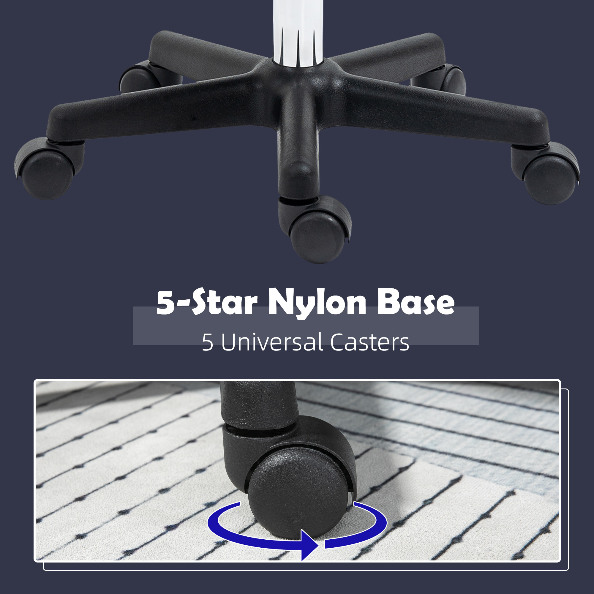 - Five wheels: Whether seated or empty, you can move around on this hairdressing chair so easily.