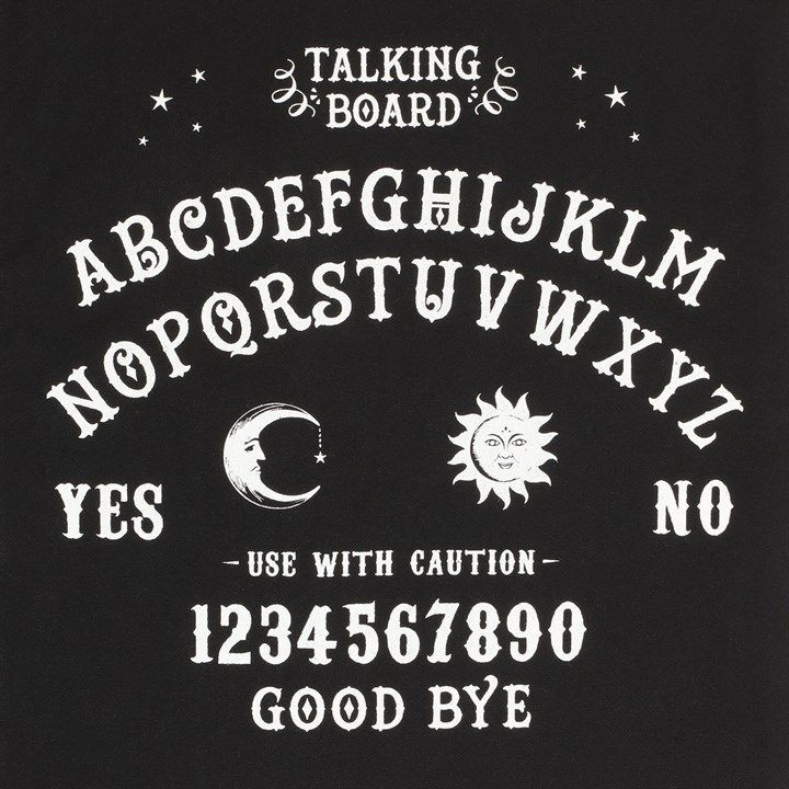 Perfect for doing the weekly shop, carrying library books, holding essentials for short day trips and more, this cotton tote bag makes a great eco-friendly addition to anyone's collection. Features a gothic talking board design printed on black inspired by classic Ouiji boards. 40cm tall, not including handles.