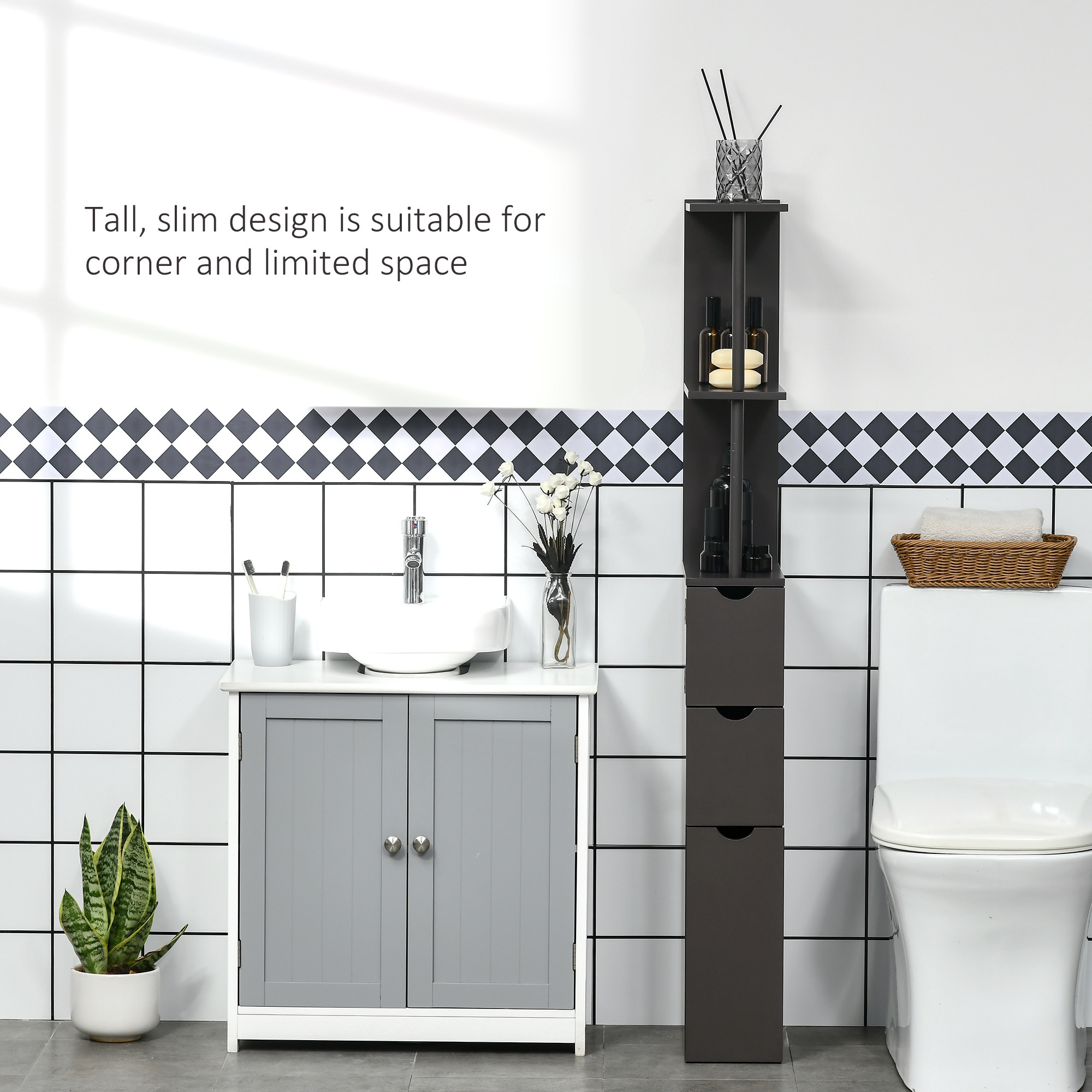 Tall Bathroom Cabinet, Freestanding Bathroom Storage Cabinet with 2-Tier Shelf and Drawers, Narrow Cupboard Storage Unit, Brown