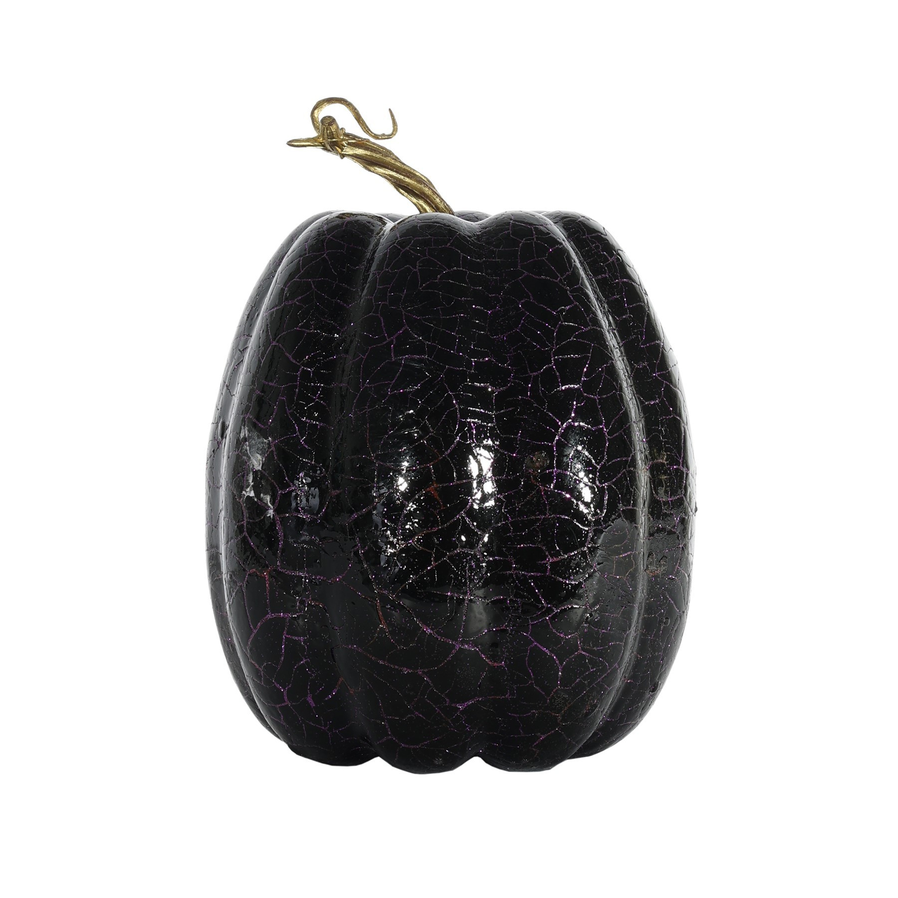Tall Crackled Finish Pumpkin - Black / Purple (21cm x 15cm)