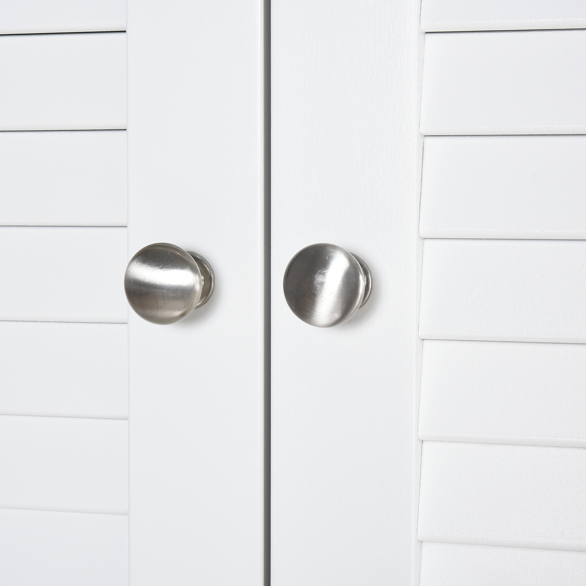 Tall Freestanding Bathroom Cabinet Retro Shutters w/ 3 Compartments Shelves Elevated Base Narrow Organiser White 60L x 30W x 182