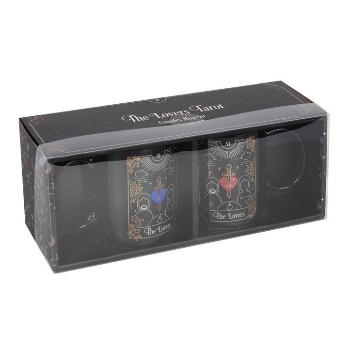 This couple's mug set makes the perfect, alternative gift for weddings and anniversaries. Inspired by traditional tarot card designs, this ceramic mug set features stunning 'The Lovers' illustrations for Him and Her. 350ml capacity per mug. Dishwasher and microwave safe. Sold as a set of 2 mugs. Designed by Something Different and part of the bestselling Fortune Teller collection of mystical gifts and home decor. Product Dimensions: H9.5cm x W12.5cm x D8cm Packaged Dimensions: H10.5cm x W26cm x D9cm