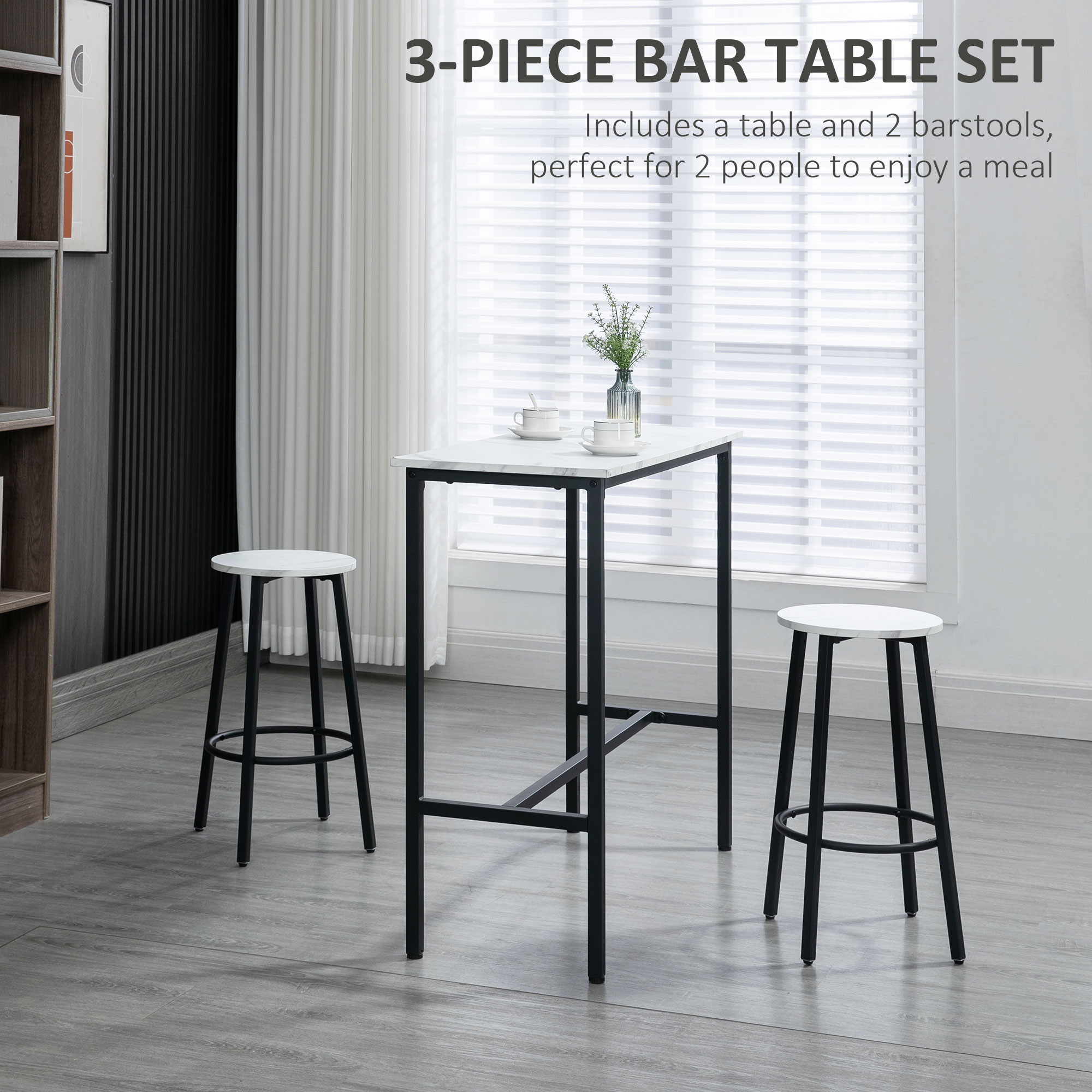 Three-Piece Marble-Effect Bar Table Set - White/Black