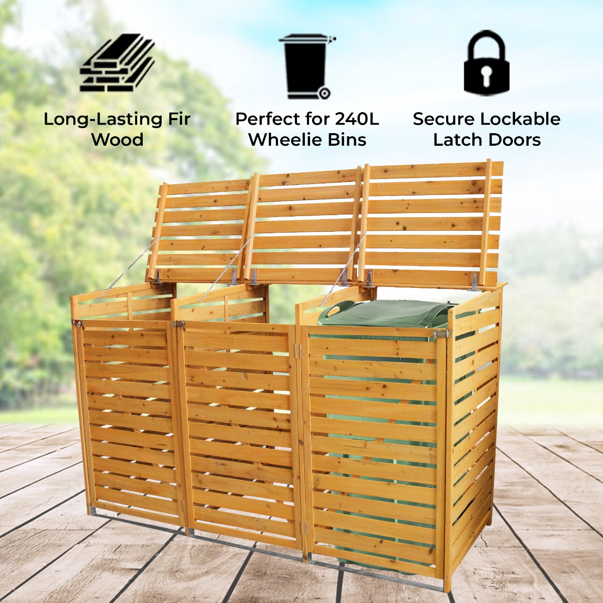 - Perfect for 3 x 240 Litre wheelie bins.