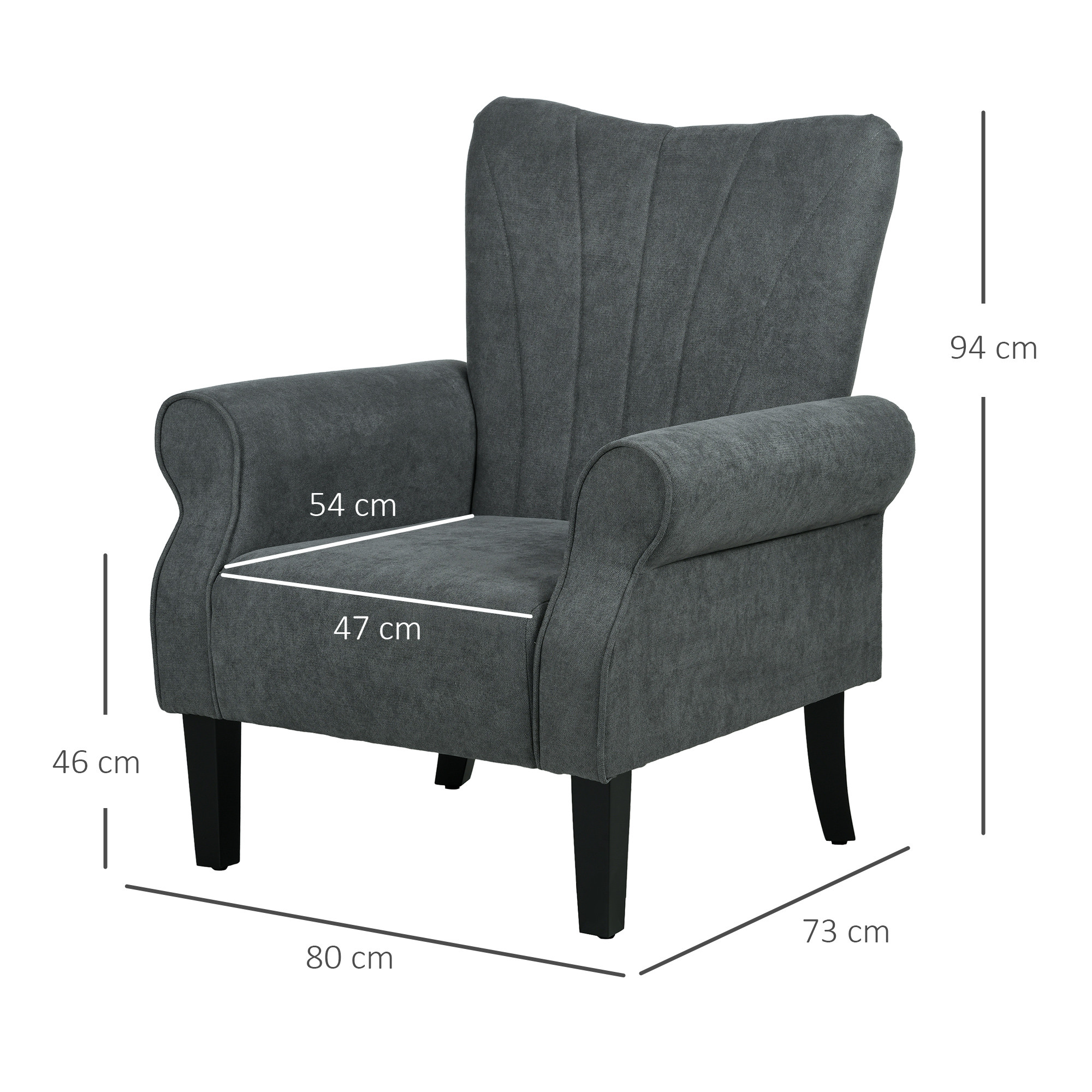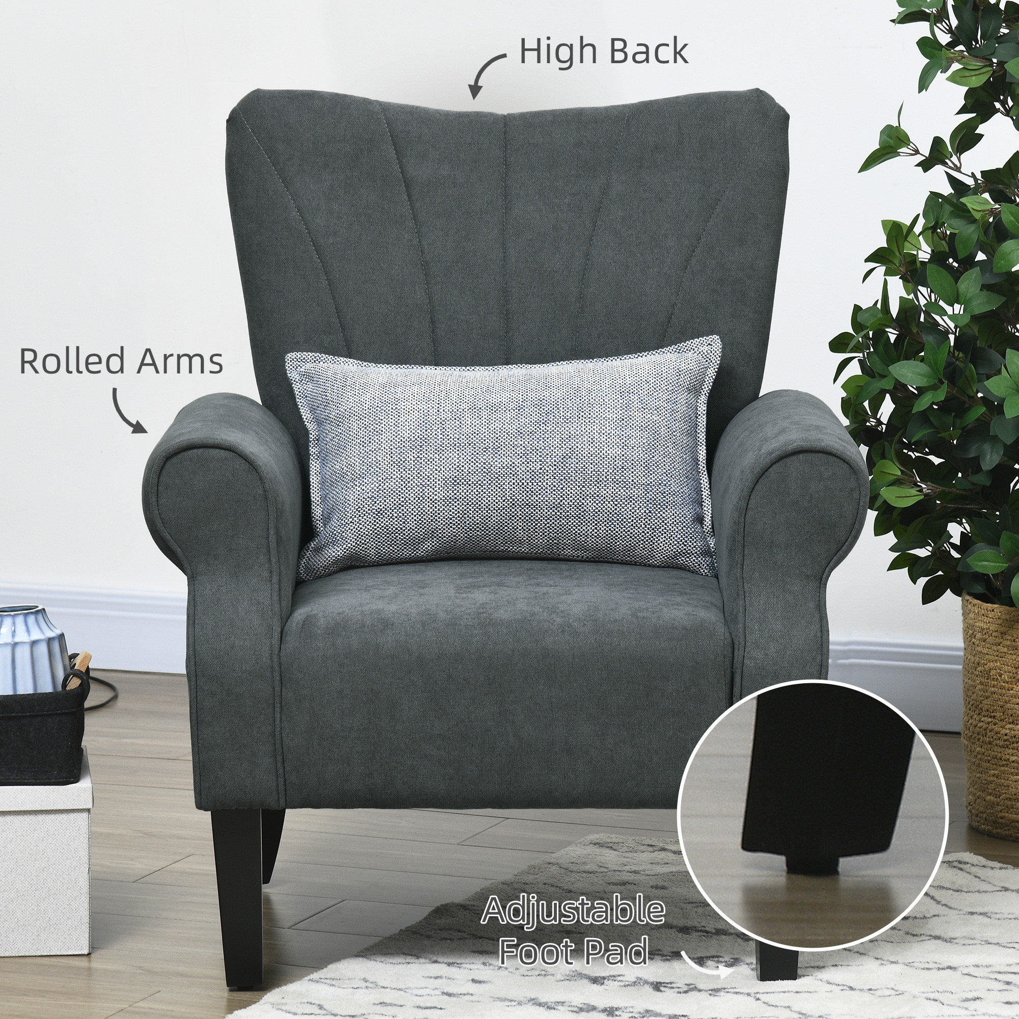 Upholstered Accent Chair with High Back, Rolled Arms and Wood Legs, Soft Thick Padded Armchair, Grey