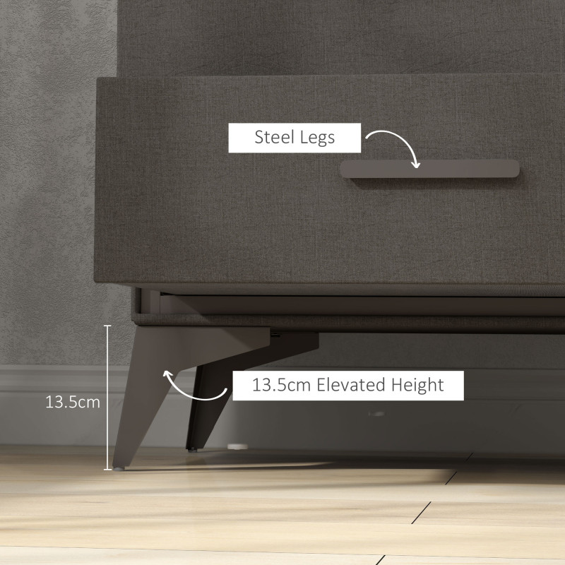 - Steel legs: Powder coated for extra strength, drawer has a strong, supportive base. Adjustable feet for balance