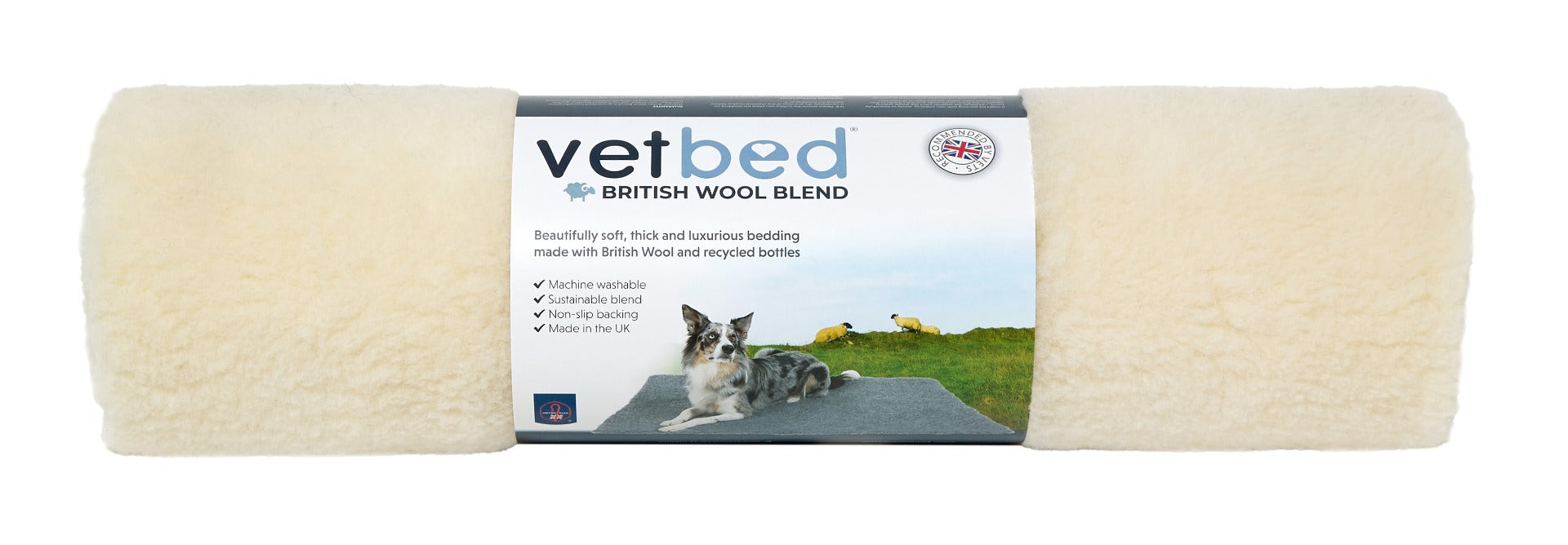 Our beautifully soft new Vetbed is made from a blend of British wool and recycled bottles. It is machine washable and sustainable blend with a non slip backing. Made in the UK.
