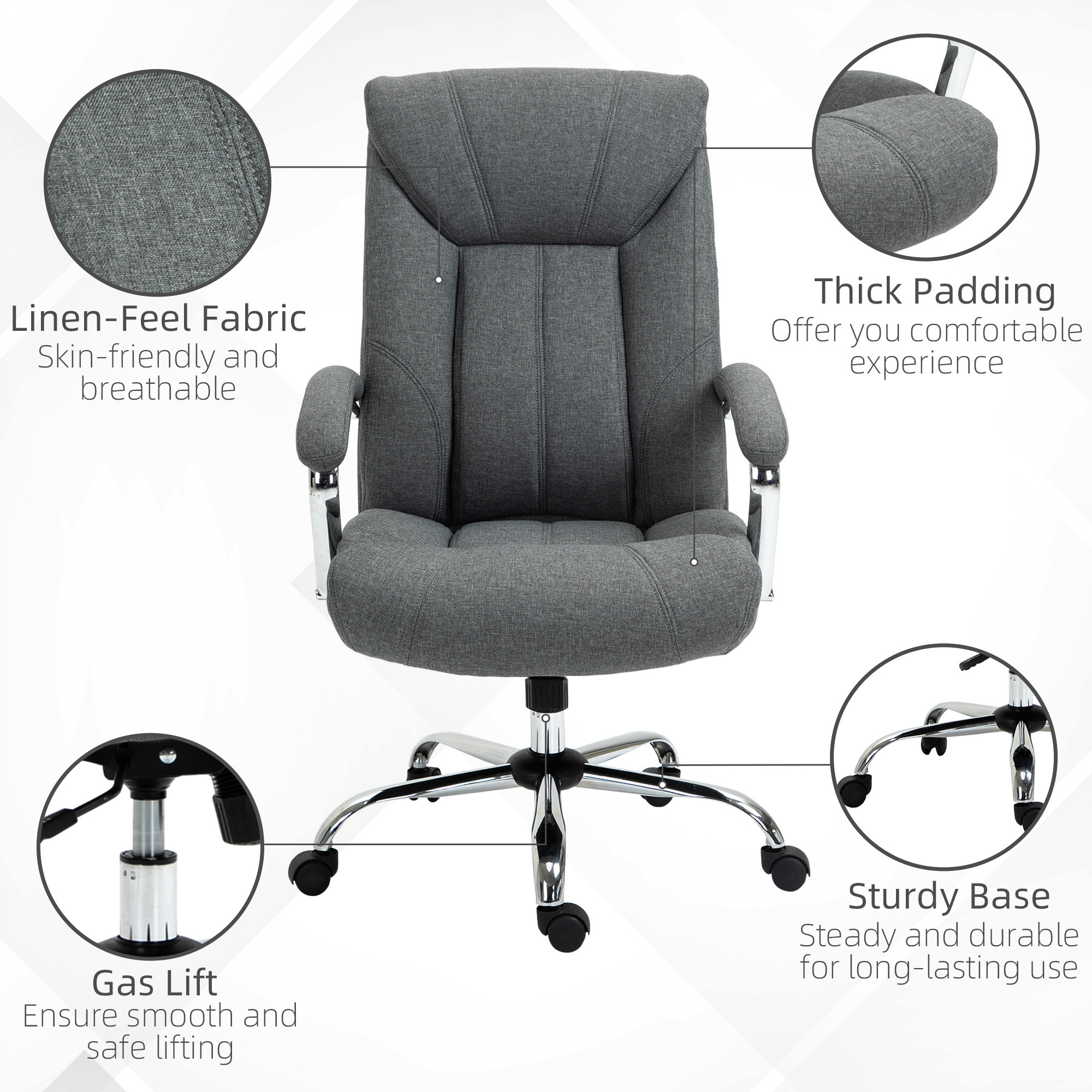Vinsetto Office Chair, Fabric Desk Chair, Padded Executive Chair with Adjustable Height, Swivel Wheels, Metal Star Base, Grey
