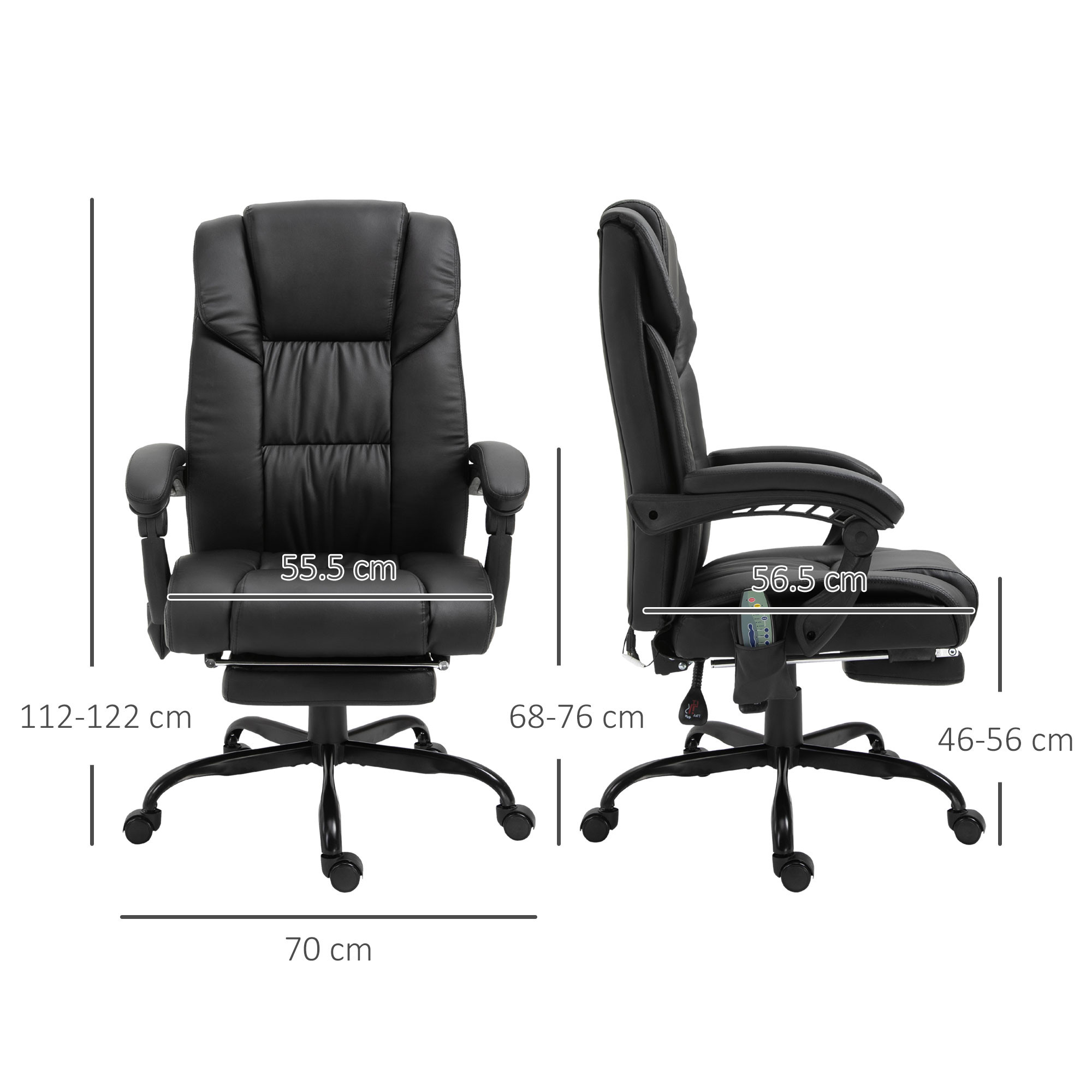 Vinsetto 6-Point Massage Office Chair, PU Leather Desk Chair with Adjustable Height and Footrest for Home Office, Black