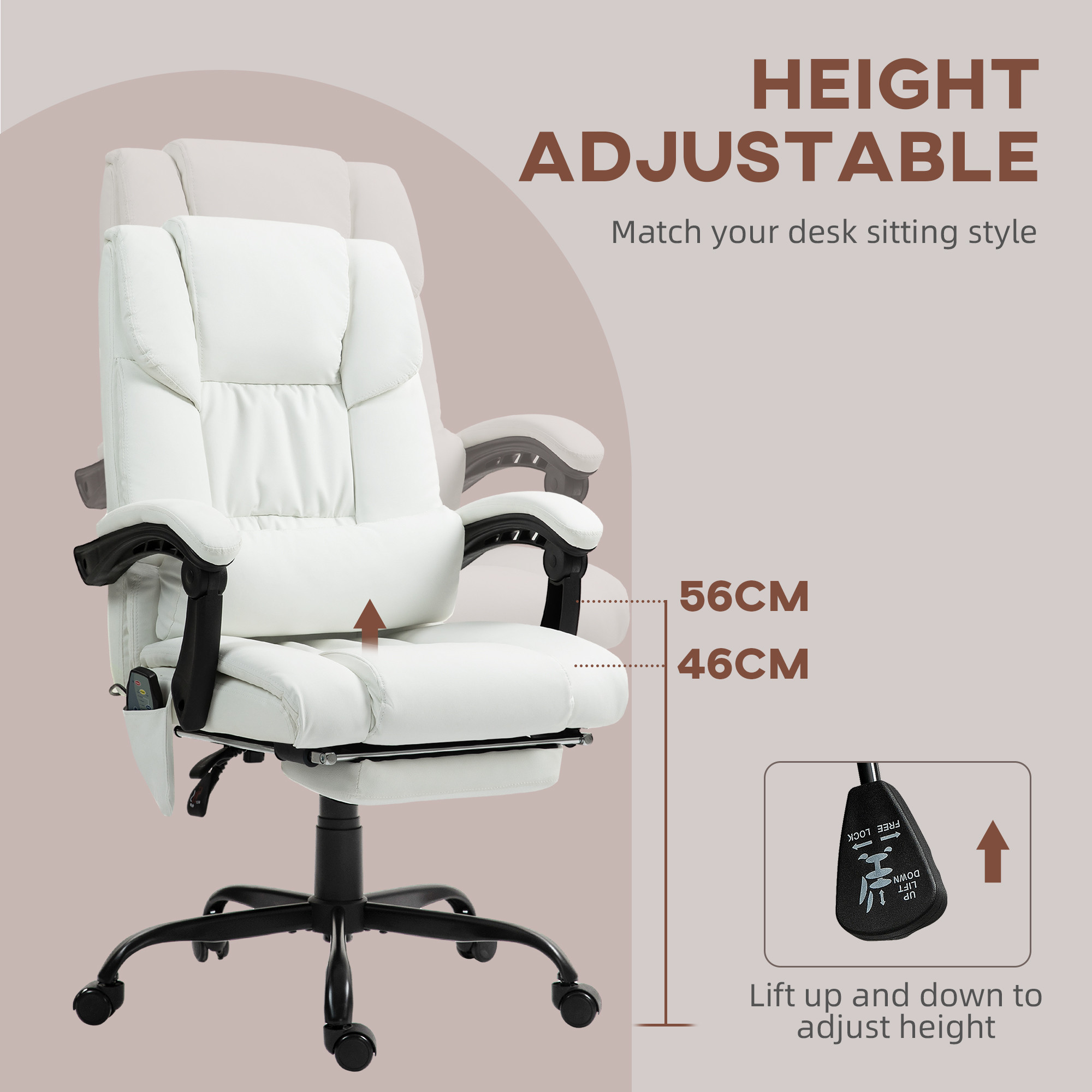 Vinsetto 6-Point Massage Office Chair, PU Leather Desk Chair with Adjustable Height and Footrest for Home Office, White
