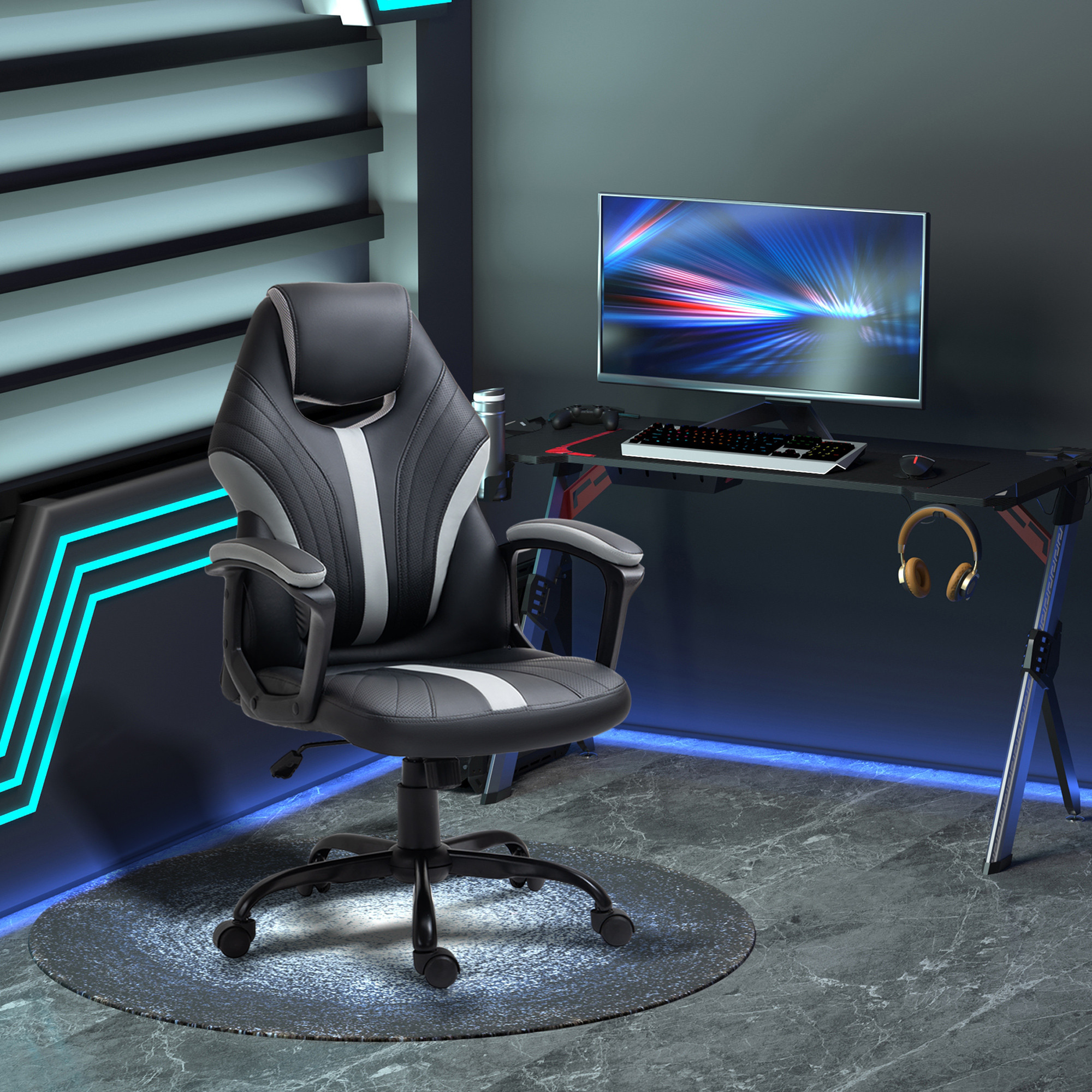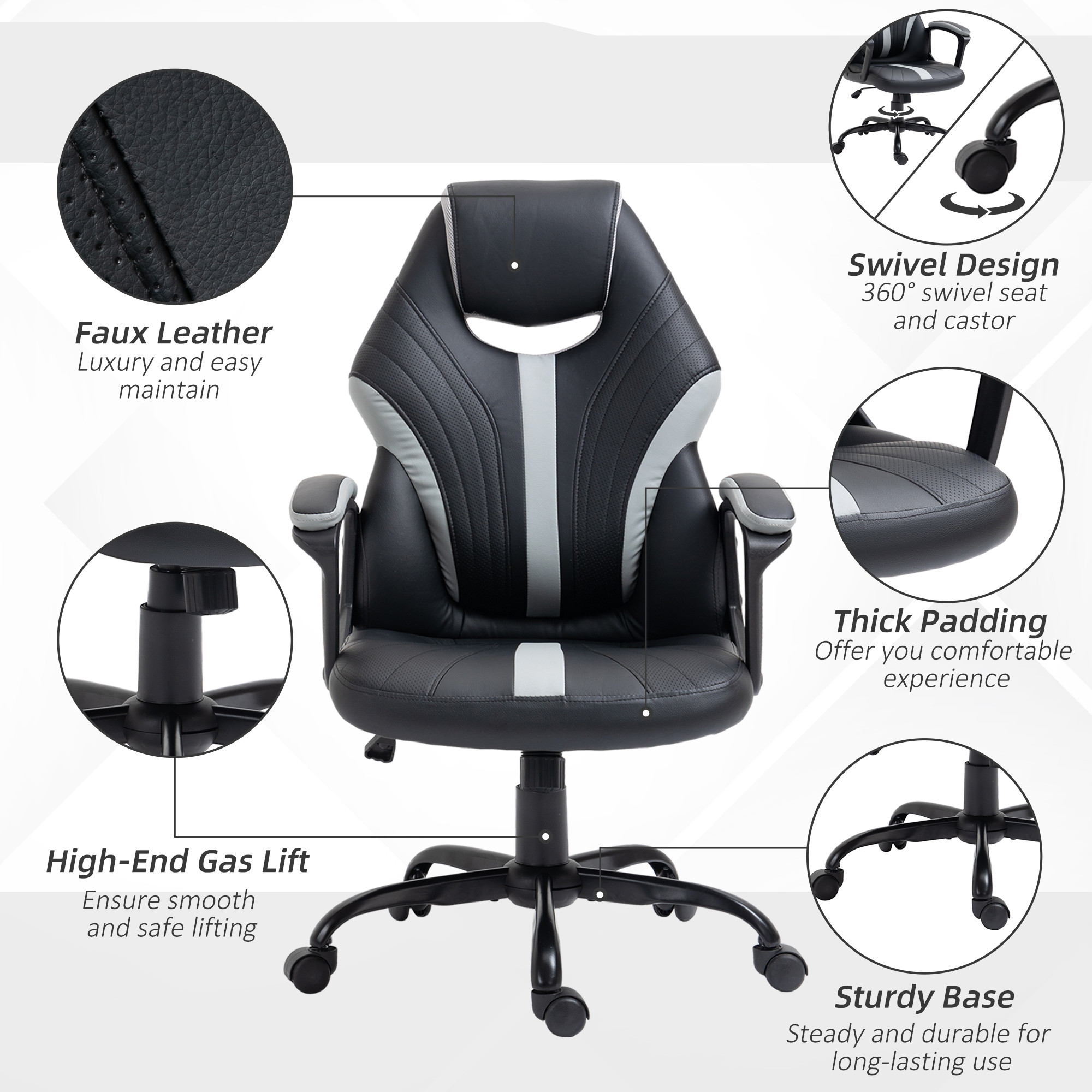 Vinsetto Computer Gaming Chair, Desk Chair with Breathable PU Leather Back and Seat, Soft Padded Armrests and Rolling Wheels for