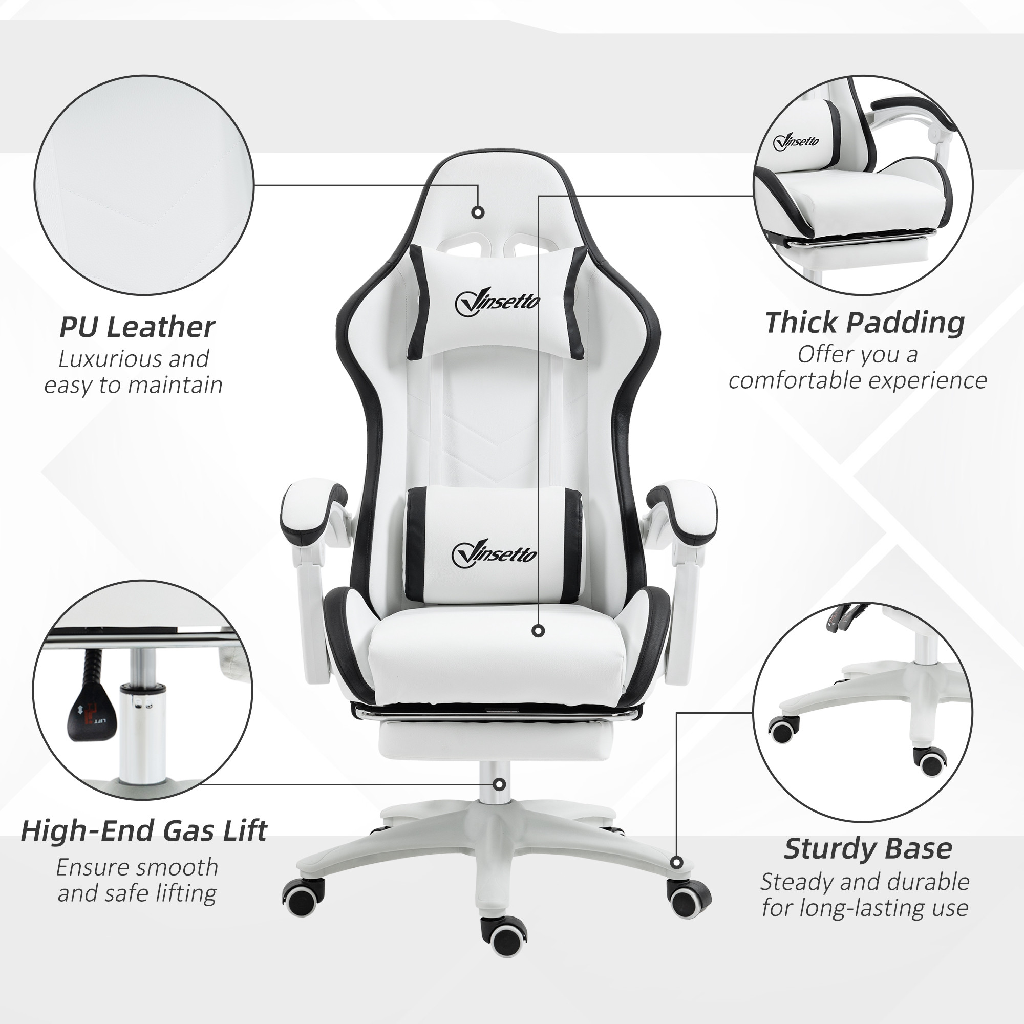 Vinsetto Computer Gaming Chair, PU Leather Desk Chair with Footrest, Swivel Task Chair with 135° Reclining Back and Lumbar Suppo