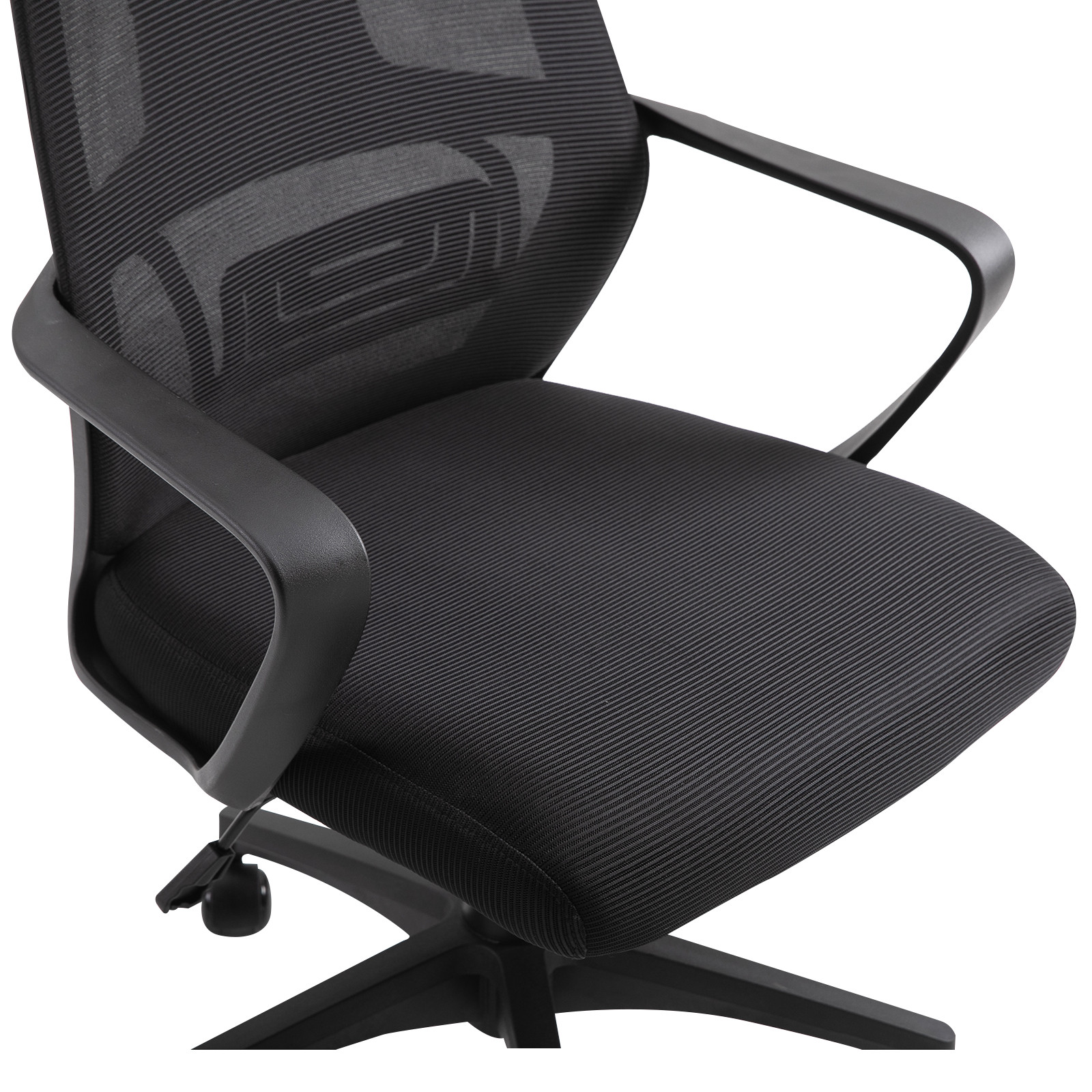 - 360° swivel base: Move side-to-side on mesh office chair, with five wheels to move easily.