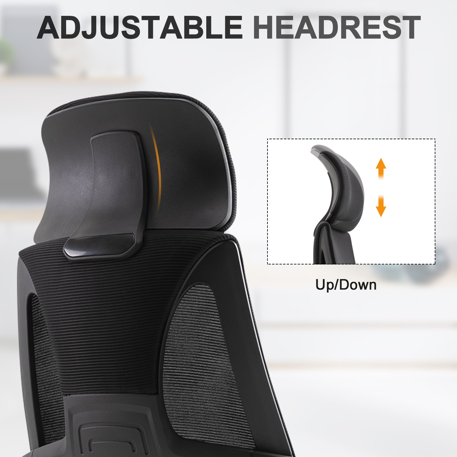 - Adjustable headrest: Large and comfortable, moves up and down. Home office chair supports your head and neck when leaning back.