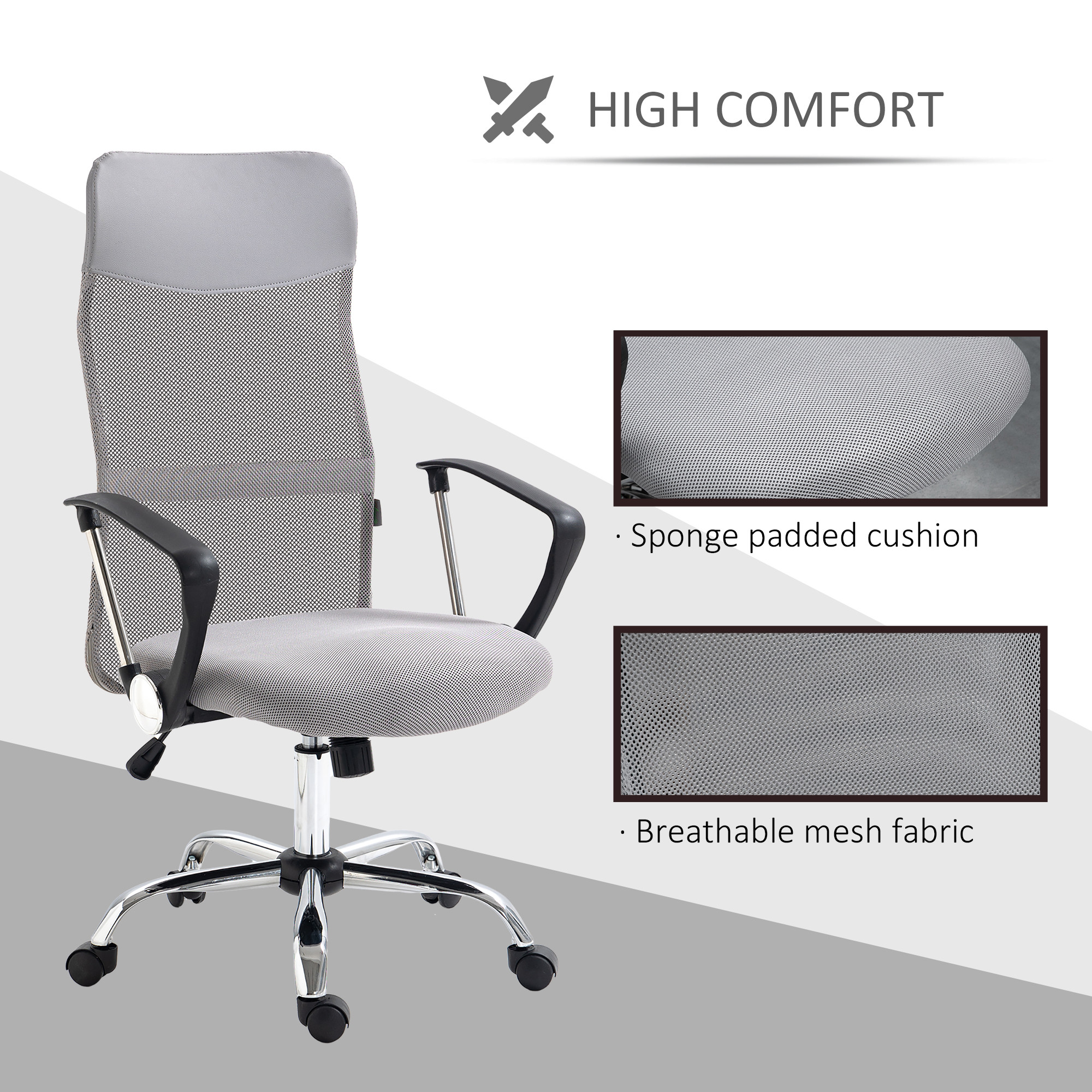 Vinsetto Ergonomic Office Chair Mesh Chair with Adjustable Height Tilt Function Light Grey