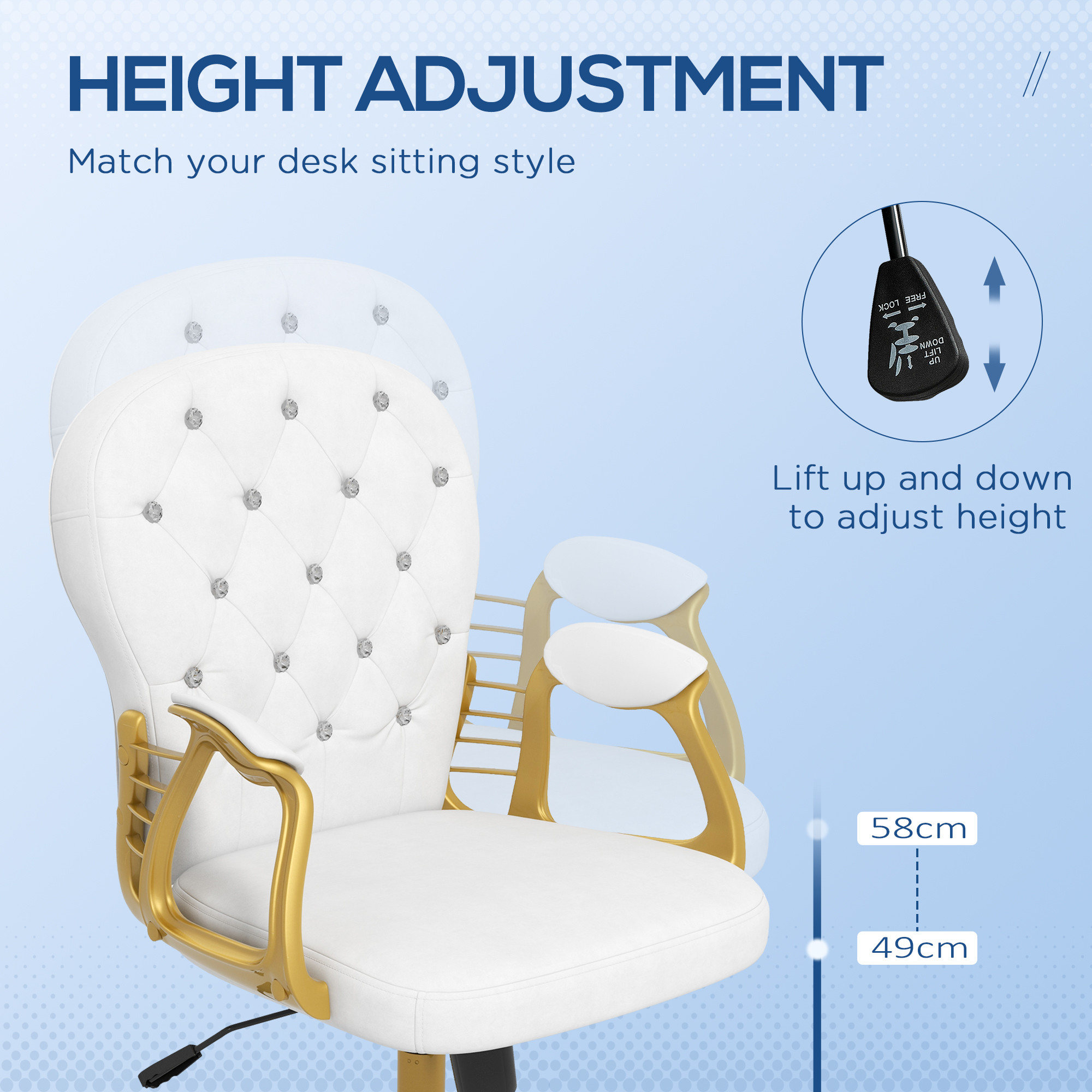 - Glam Design: Softly-coloured home office chair features an abundance of diamantes on the tufted back. Add some sparkle and fun to your work time.