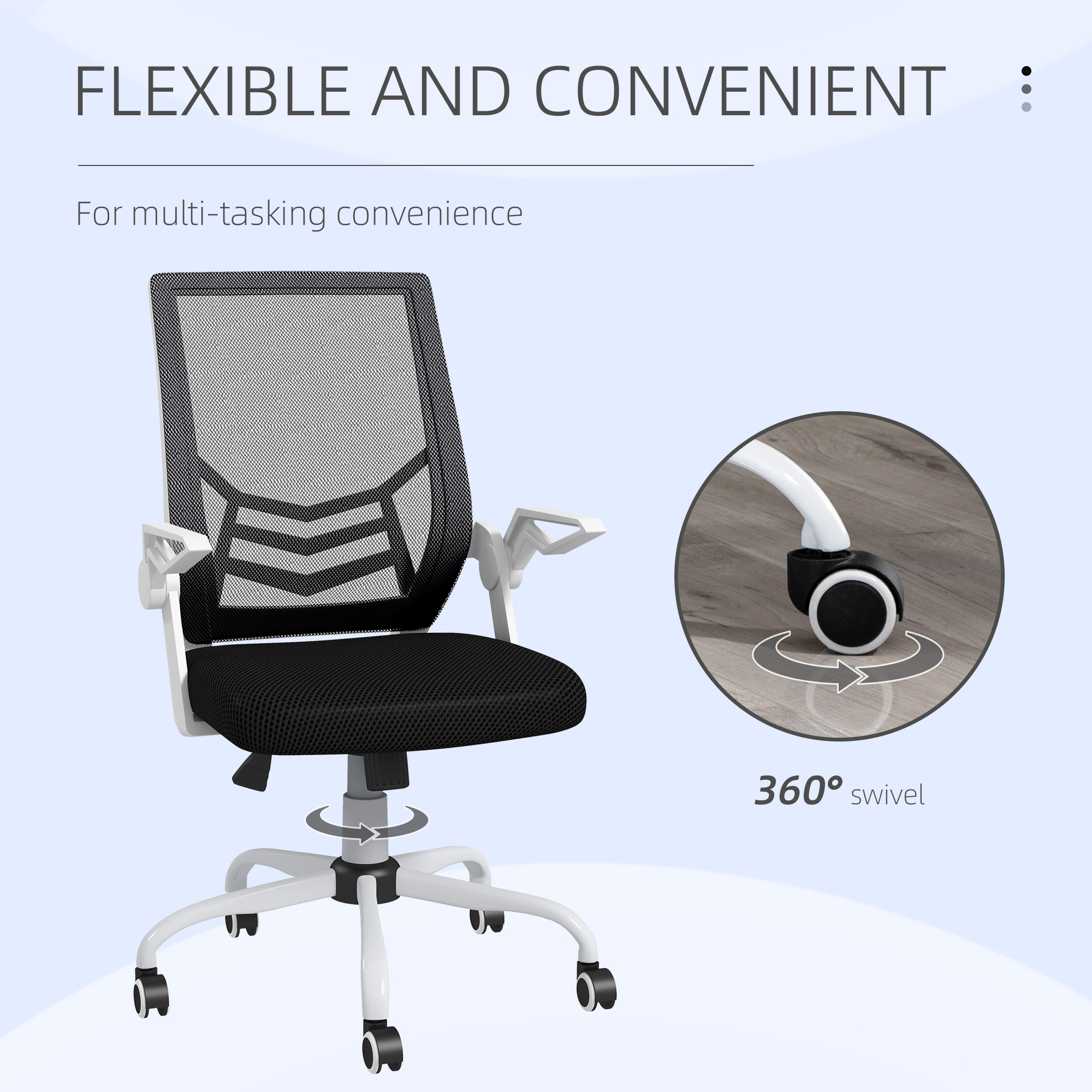 Vinsetto Mesh Office Chair, Computer Desk Chair with Flip-up Armrests, Lumbar Back Support and Swivel Wheels, Black
