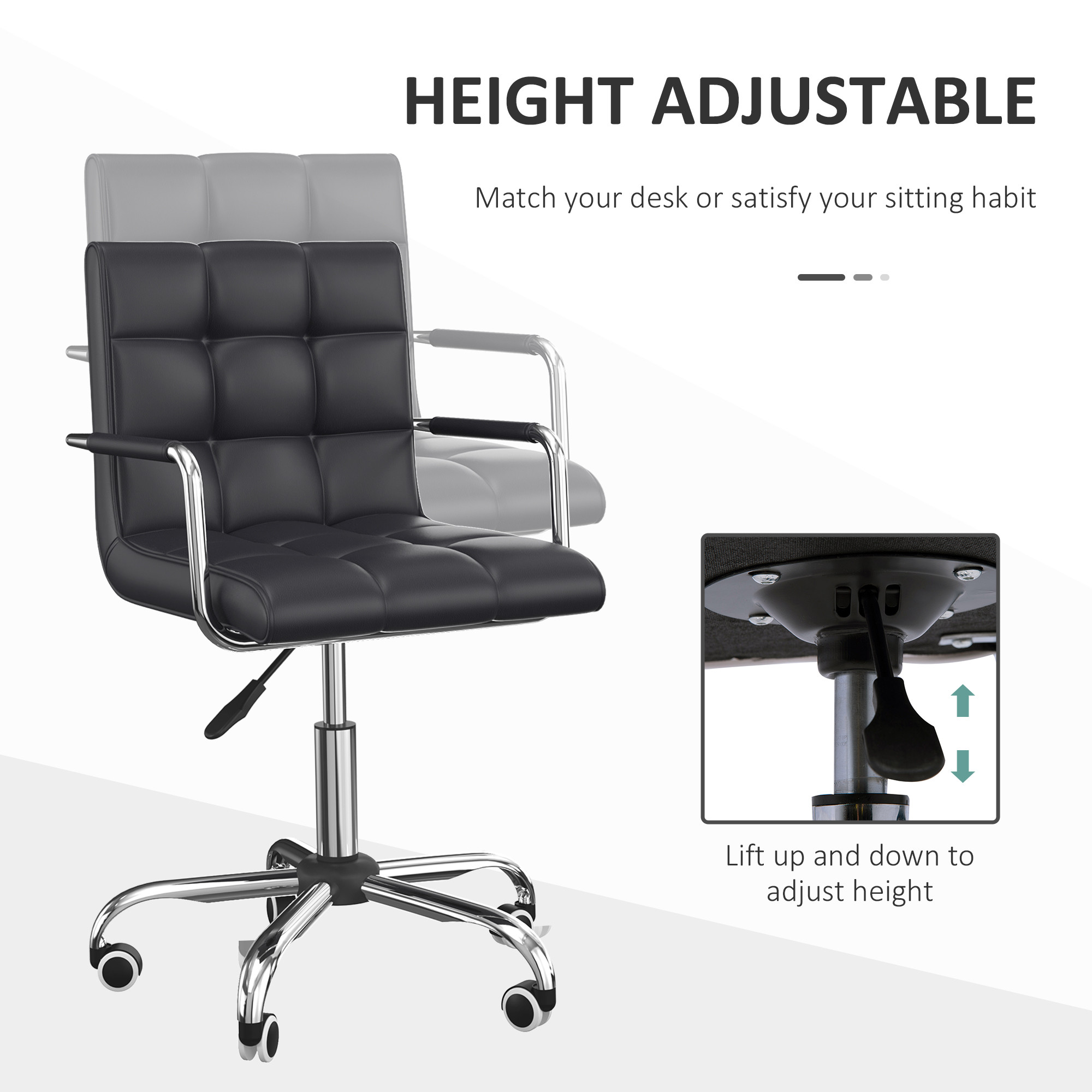 Vinsetto Office Chair, Makeup Vanity Chair, Mid Back Computer Chair, PU Leather Swivel Study Chair with Adjustable Height, Armre