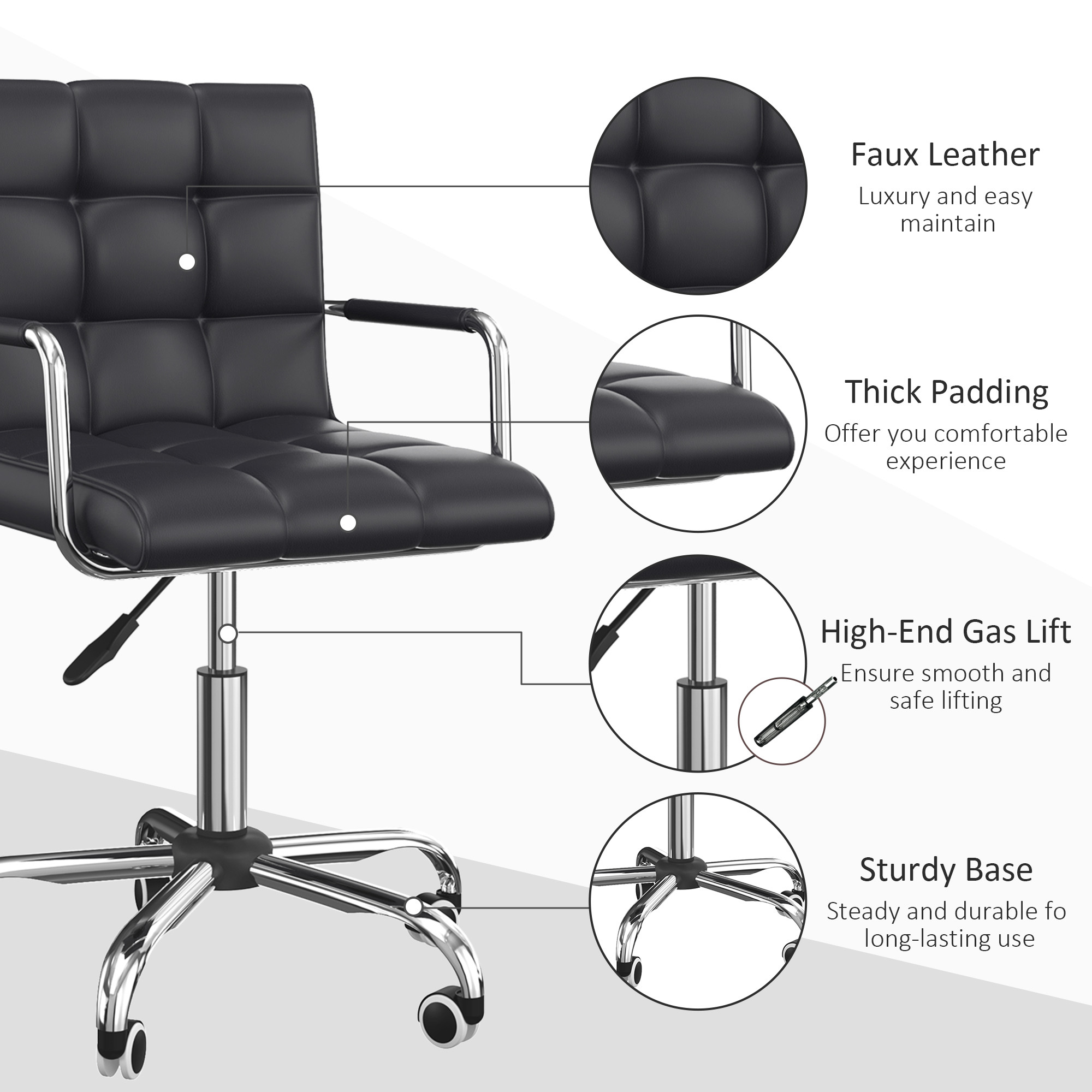 - Stylish: Stand-out square shape with grid padding, this faux leather office chair is great for the home office. It's swish upholstery complements the bold design.