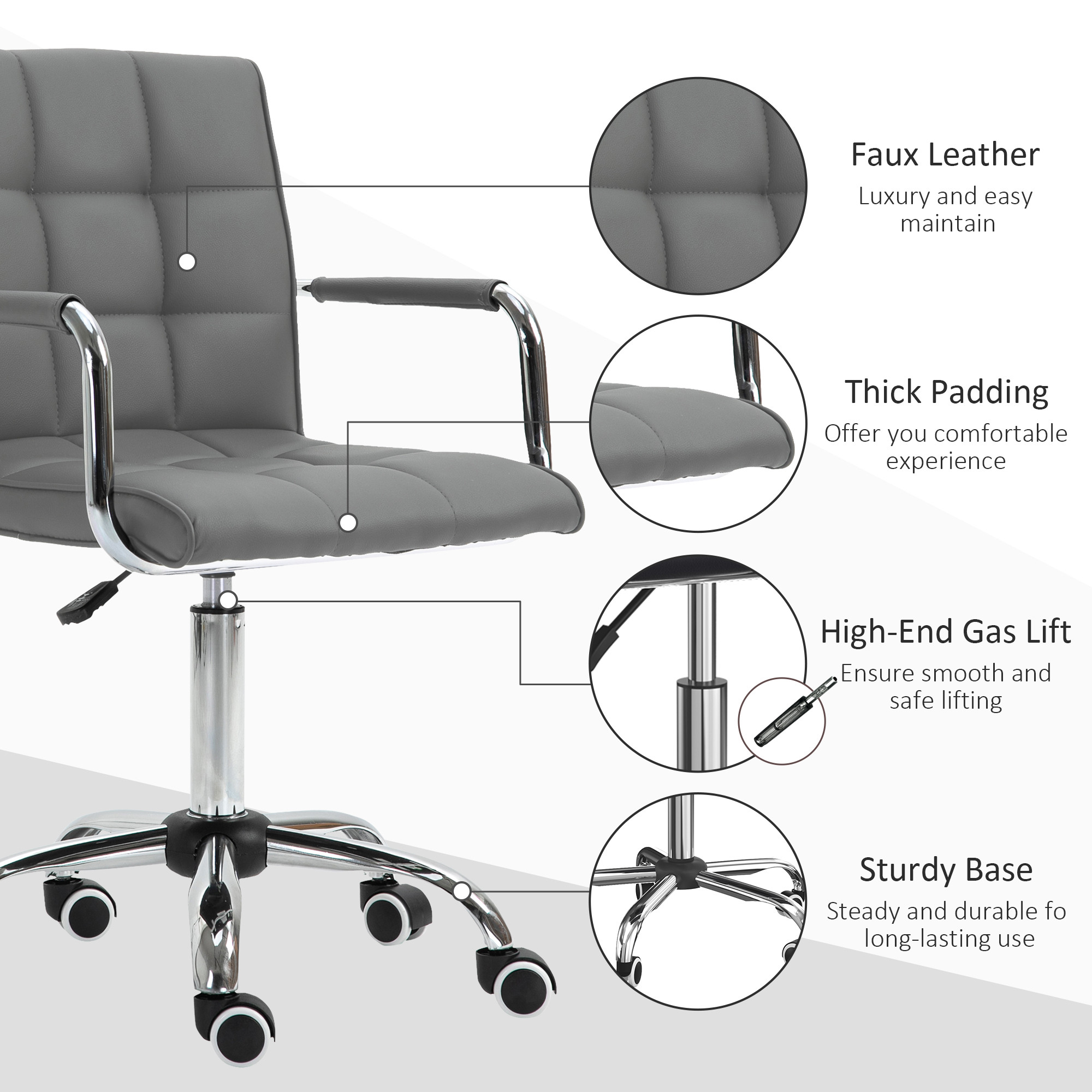 Vinsetto PU Leather Home Office Desk Chair, Computer Chair with Mid Back, Arm, Swivel Wheels, Adjustable Height, Grey
