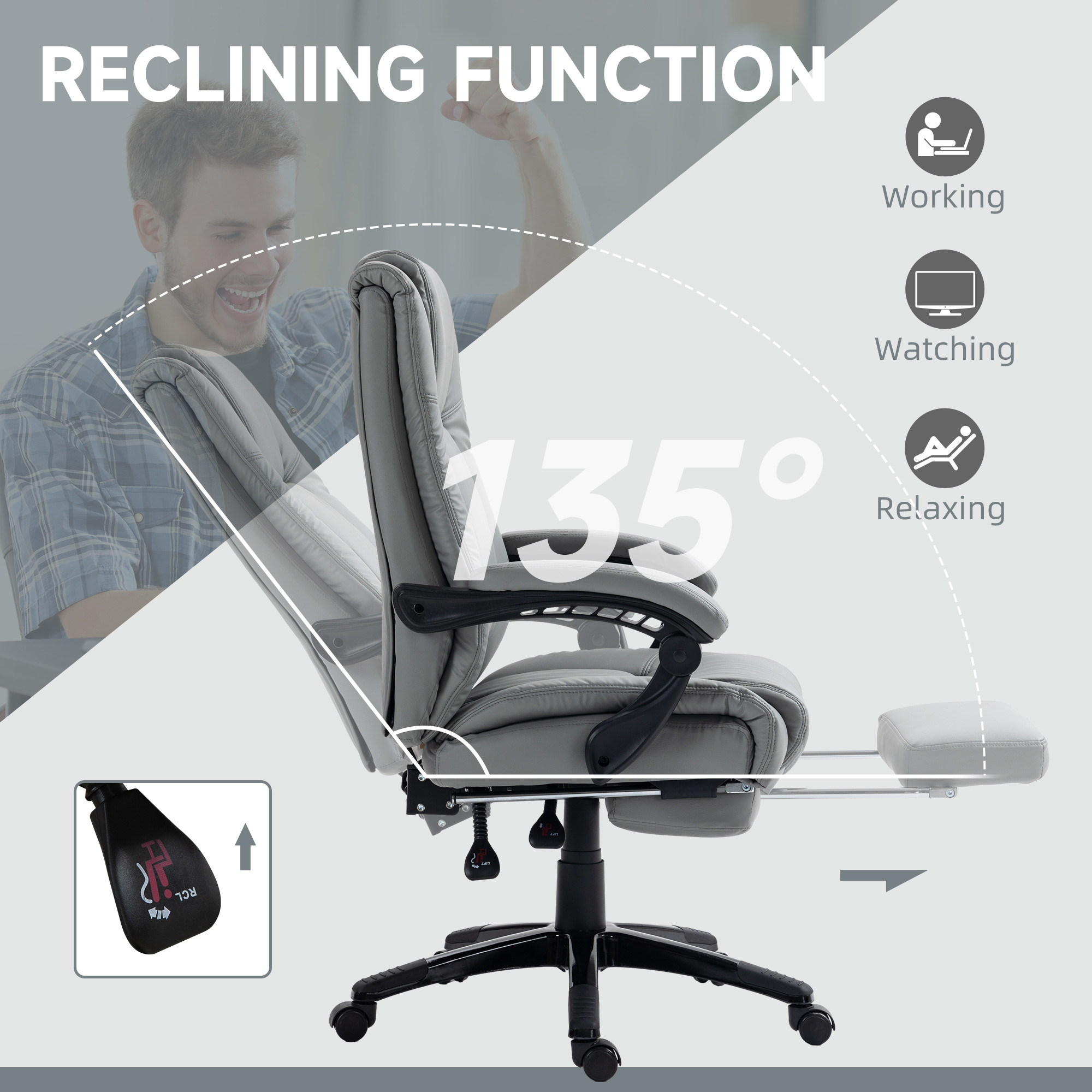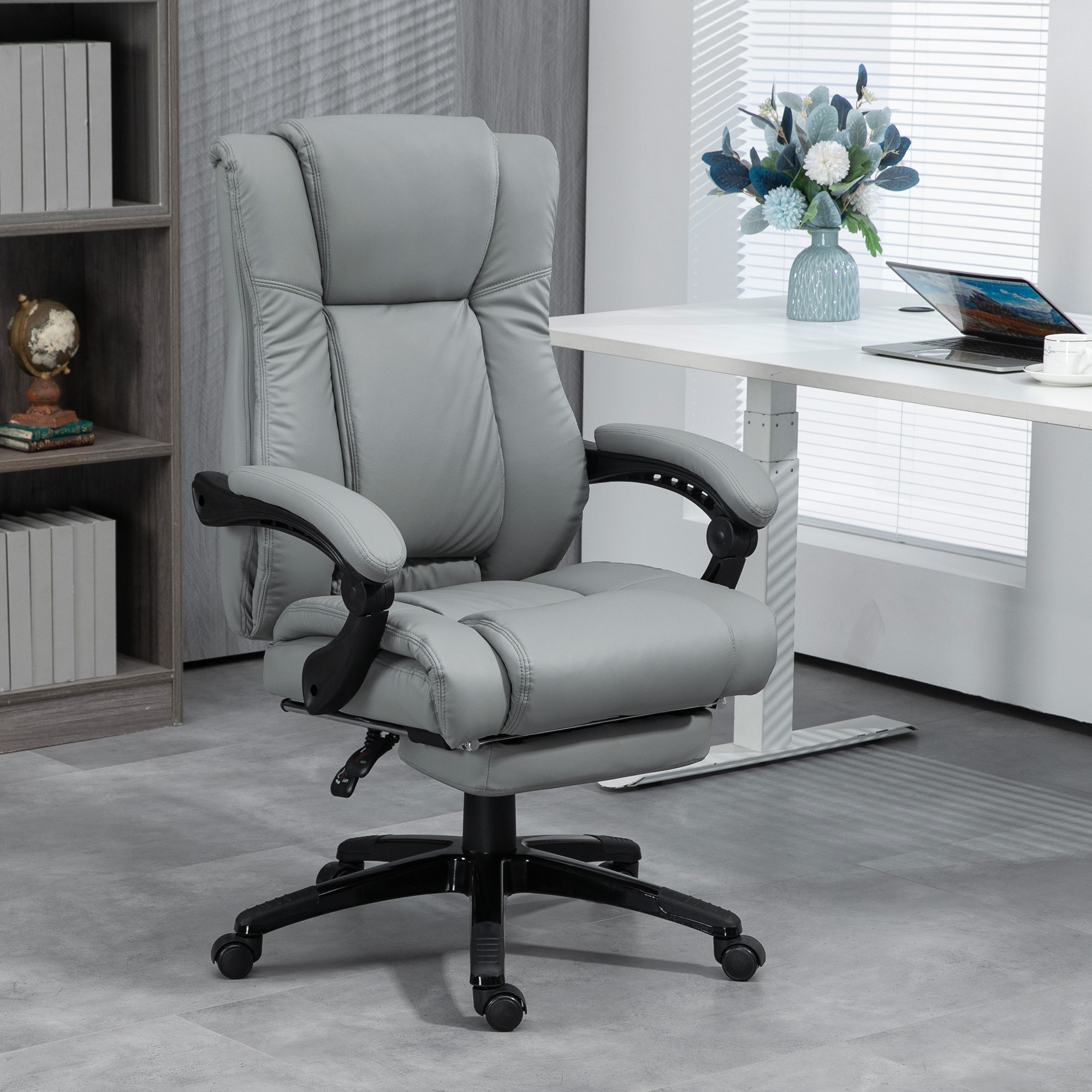 Vinsetto PU Leather Office Chair, Swivel Computer Chair with Footrest, Wheels, Adjustable Height, Grey