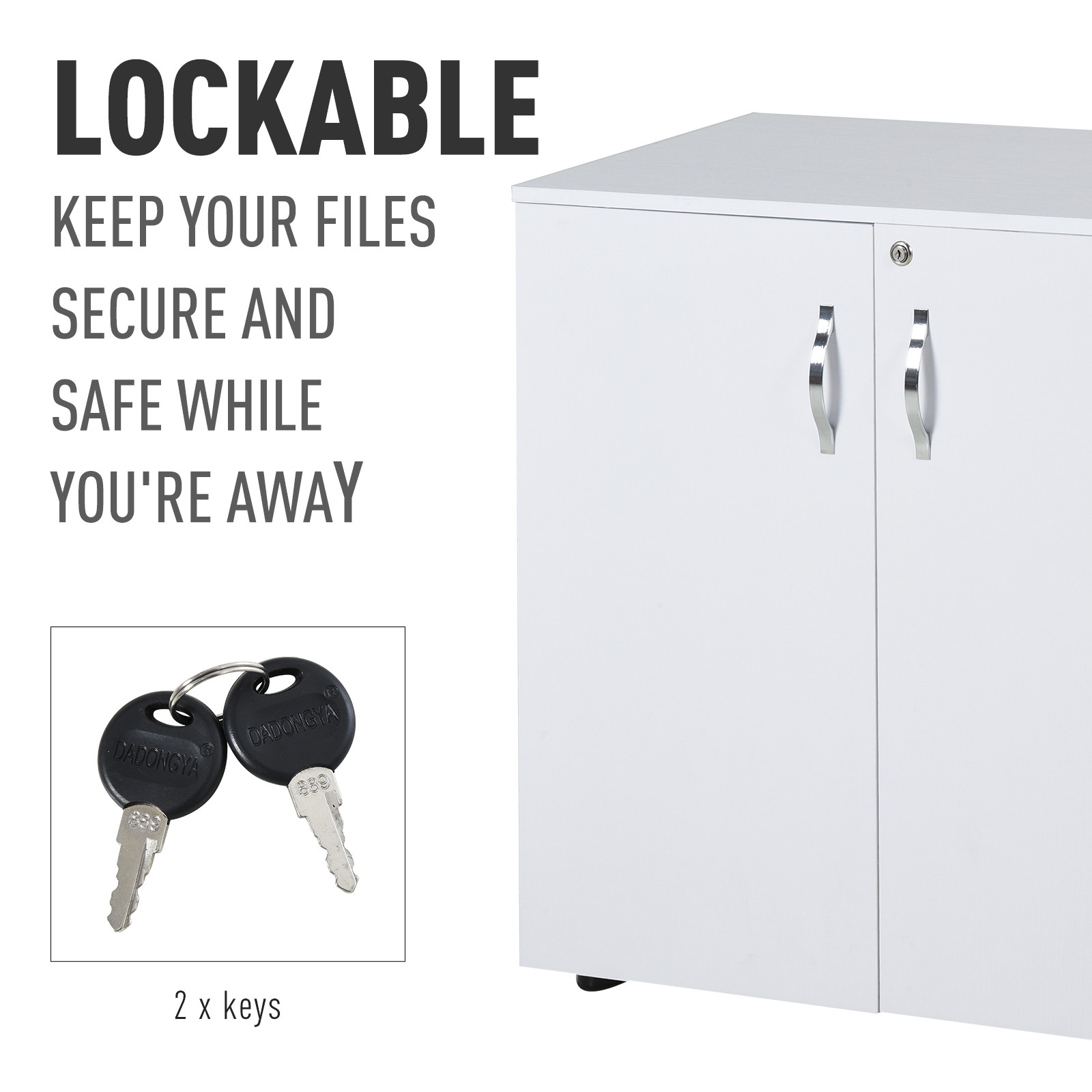 - Lockable, with two keys included: Keeps contents safe and secure in this locking office storage cabinet whilst away. Two keys so you have a spare.