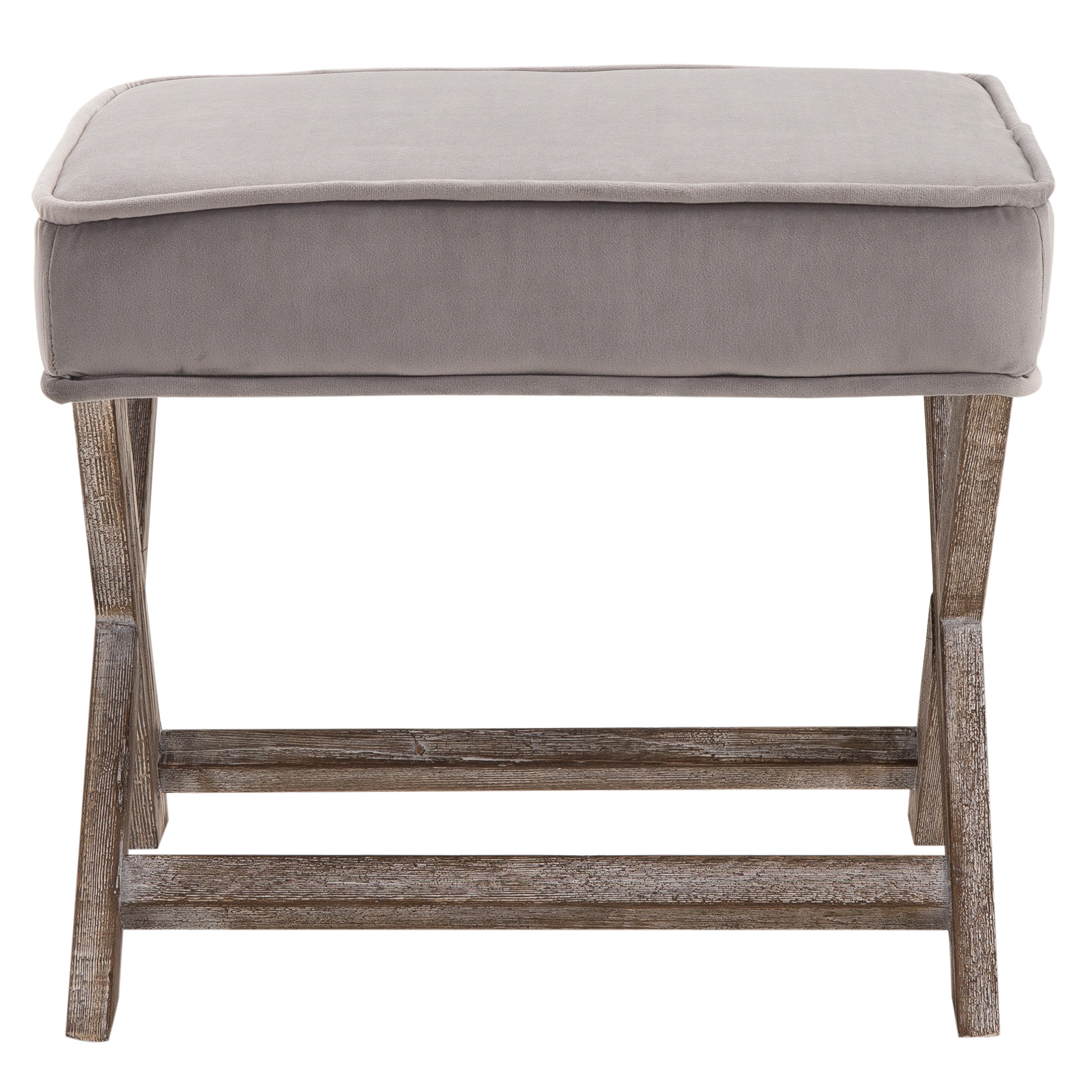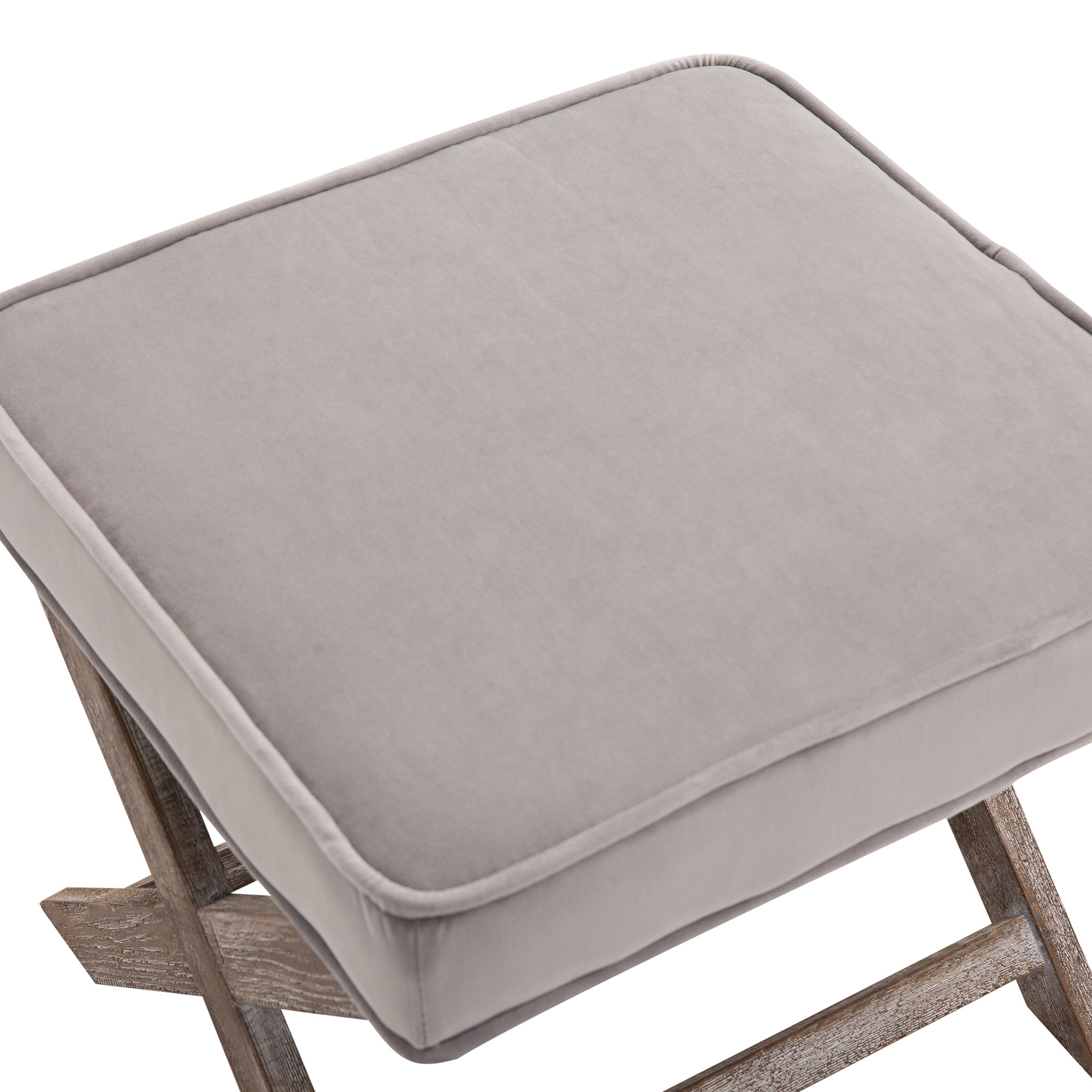 Vintage Footstool Padded Seat X Leg Chair Velvet Cover Shabby Chic Footrest Solid Rubber Wood Frame 49.5 x 45 x 41 cm Grey