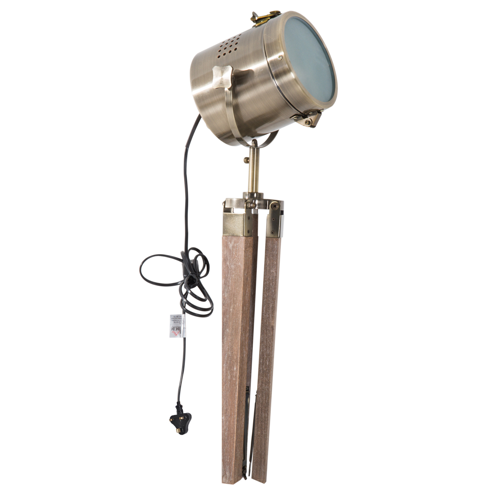 Vintage Tripod Table Desk Lamp Bedside Light Spotlight Brass Antique Searchlight Wooden Base