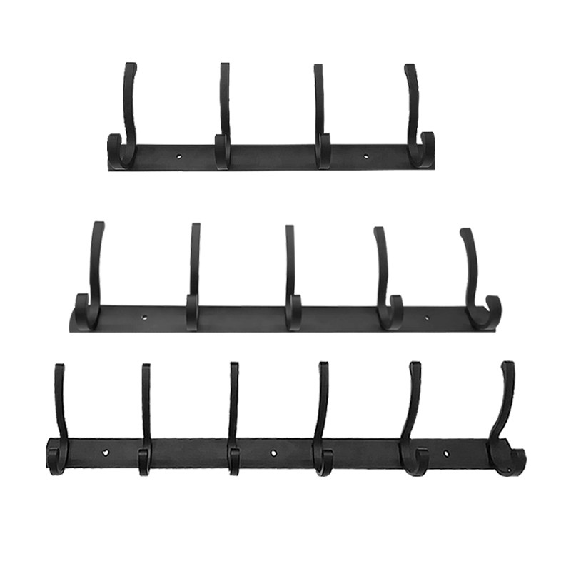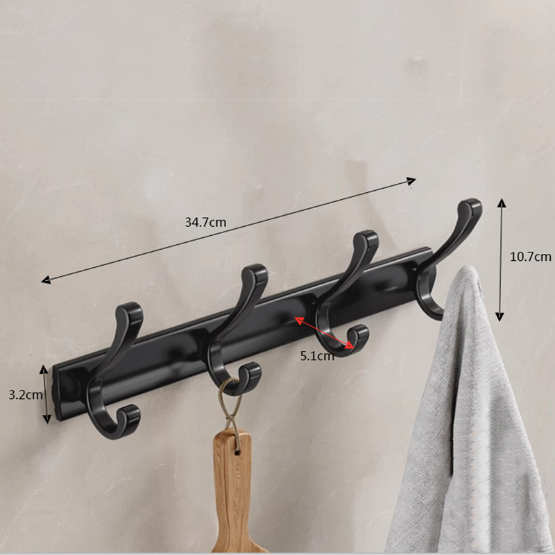 Wall Hanger Hooks Heavy Duty Coat Rack Wall Mounted 4 Hooks - Black.