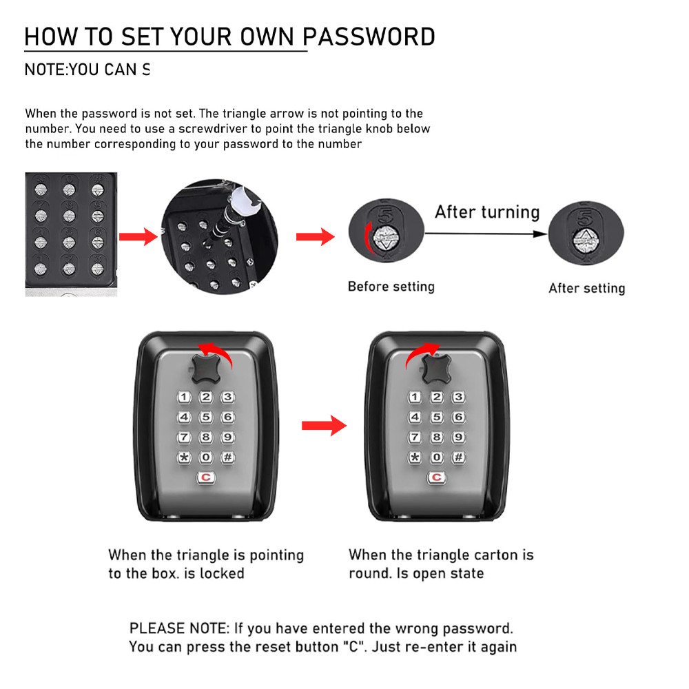 - Easy to Use: This key combination lock key box adopts a 12-digit combination, provides thousands of combinations, and ensures the highest level of security. It is recommended to take a photo or write it down after setting a new password.