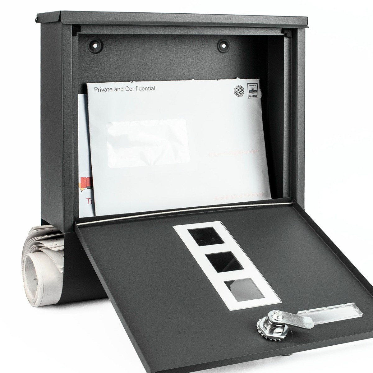 The letterboxes also have a newspaper tube at the bottom, leaving more space in the main box for other post. A set of 3 viewing windows allow you to check if you have any mail without having to unlock and open it. There is also a name card slot so you can add your house or own name to the box. Fittings are included for mounting the box to a wall.