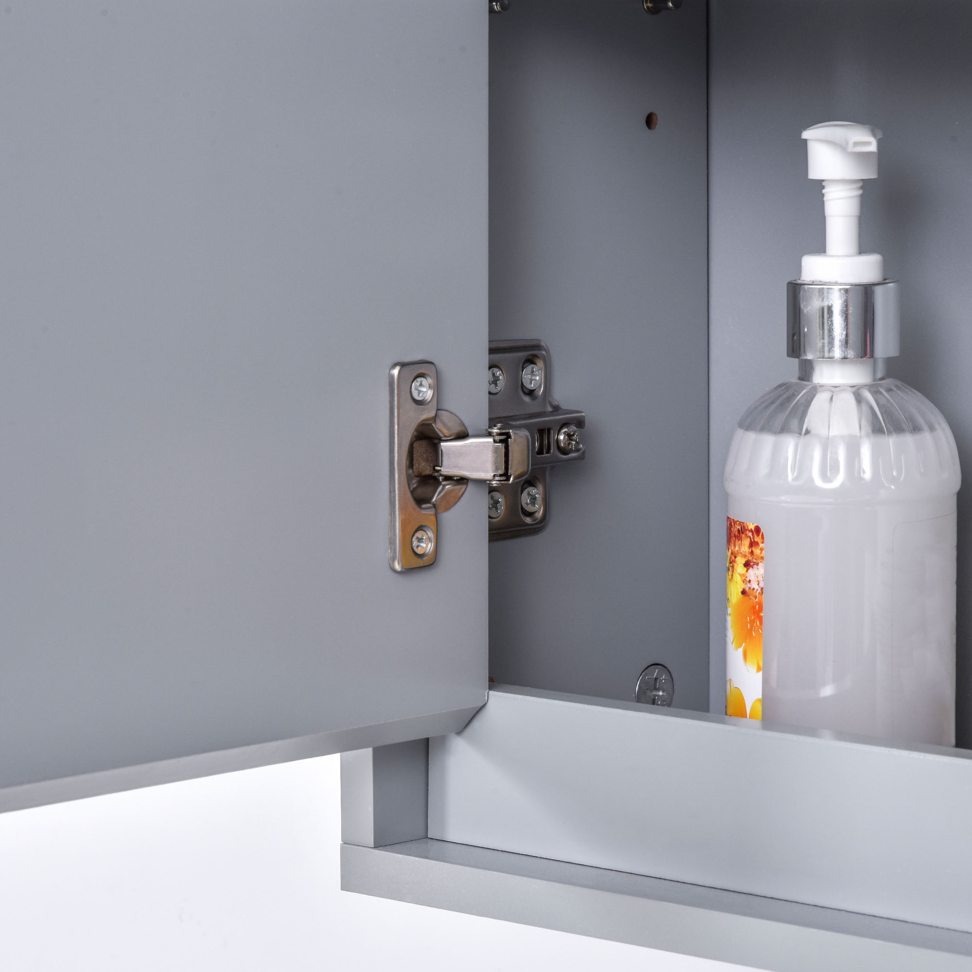 Wall Mounted Mirror Cabinet with Storage Shelf Bathroom Cupboard Double Door Grey