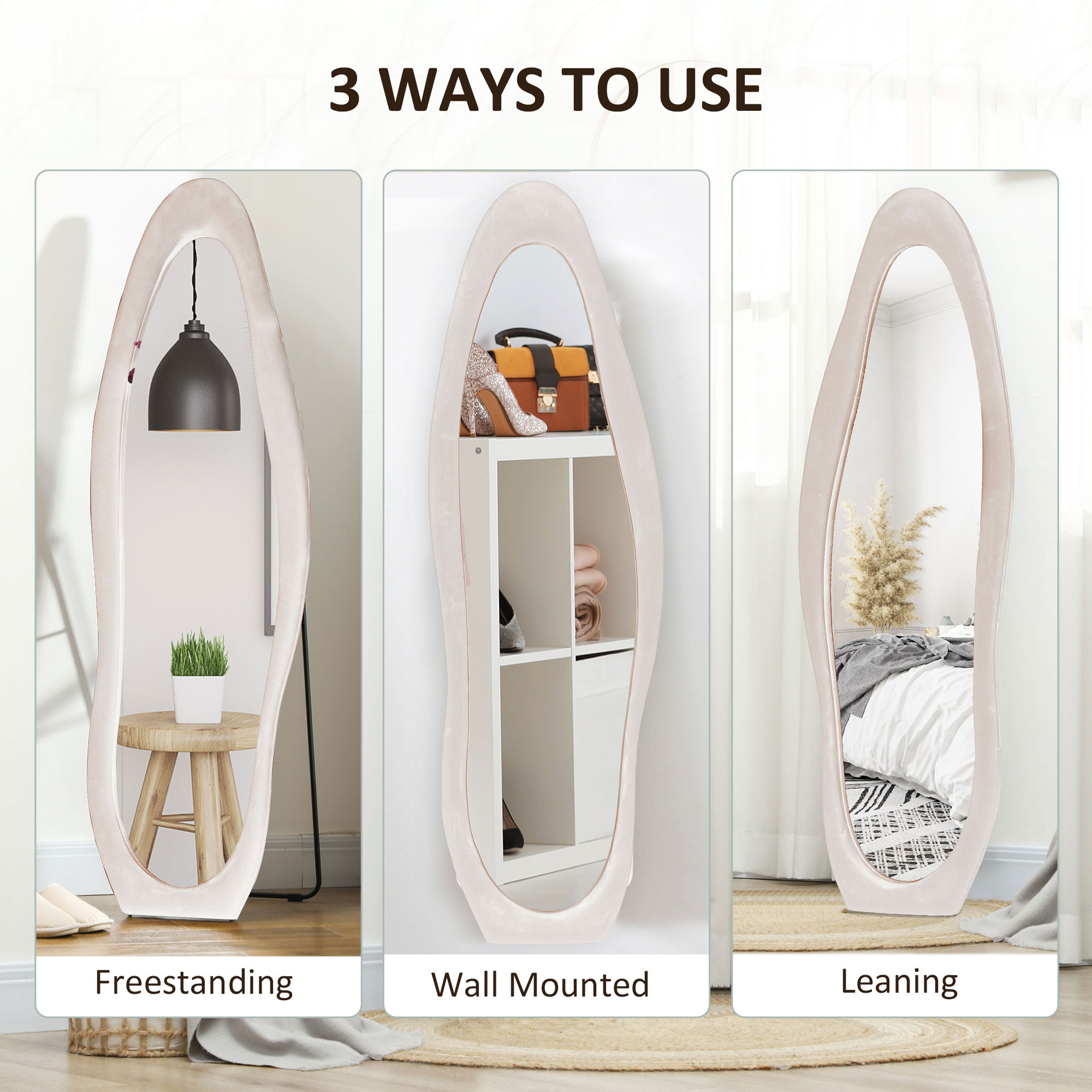 - Retro velvet-feel frame: Gentle wavy shape in a block colour and soft finish makes this large mirror a bold piece, which brings a point of interest to the bedroom, hallway and other living spaces