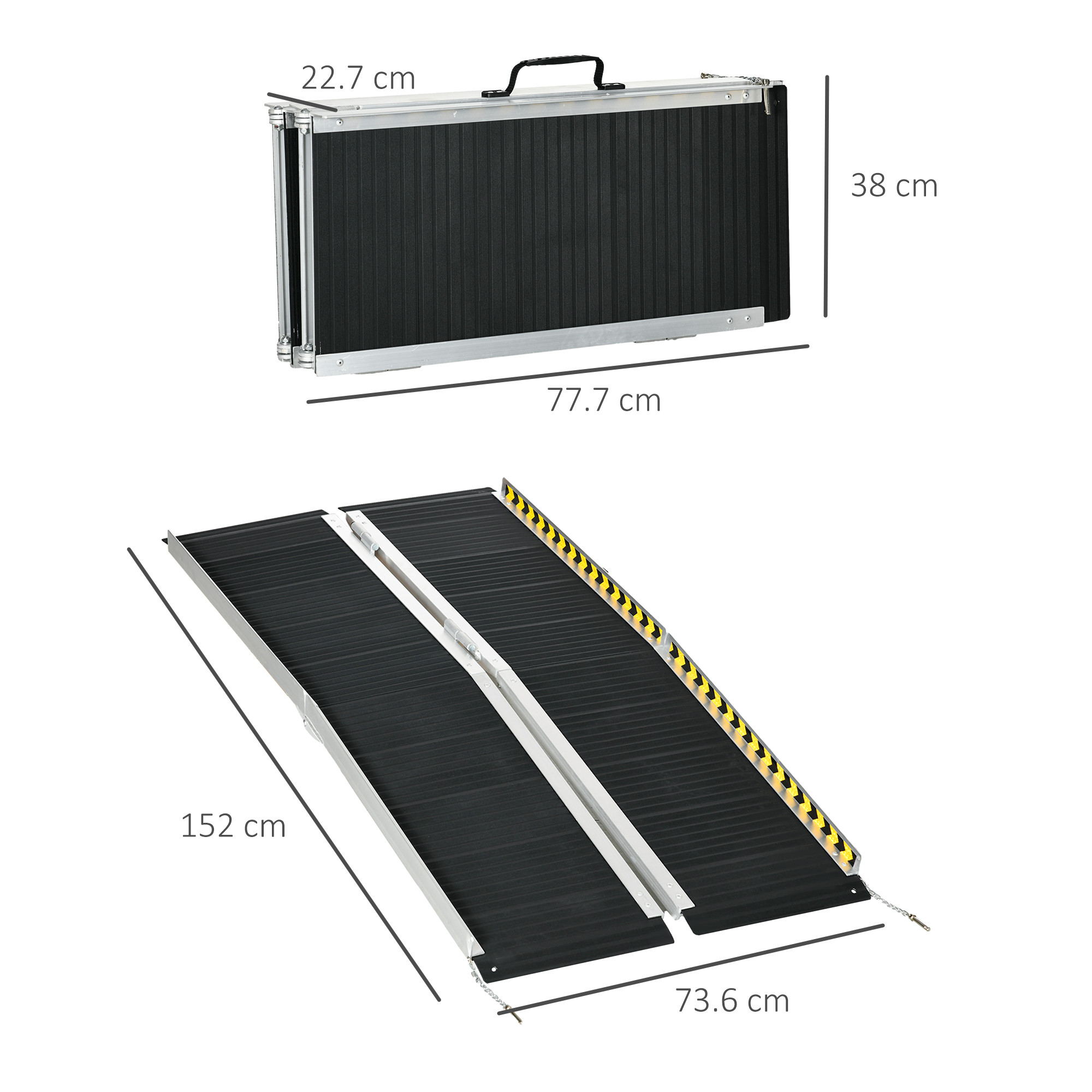 Wheelchair Ramp, 152L x 73Wcm, 272KG Capacity, Folding Aluminium Threshold Ramp with Non-Skid Surface, Transition Plates Above a