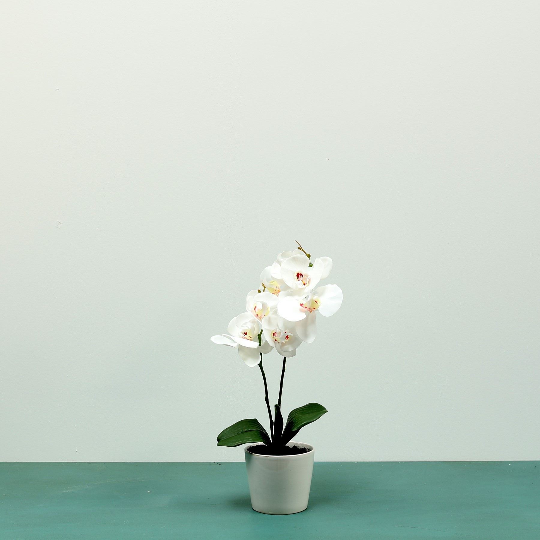 White Aragon Phalaenopsis in Ceramic Pot (1 stem)