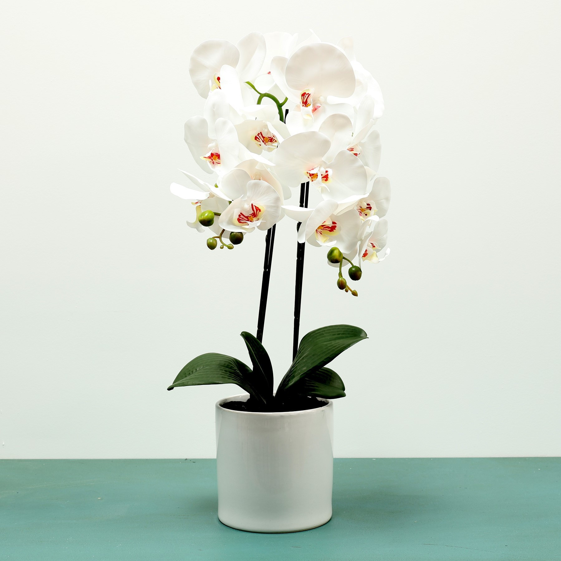 White Aragon Phalaenopsis in Ceramic Pot (2 stems)