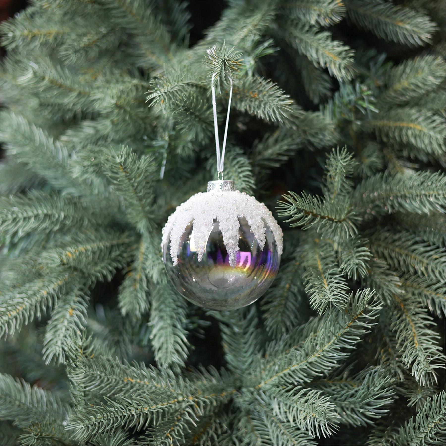 White Glass Snowcap Bauble (10cm)