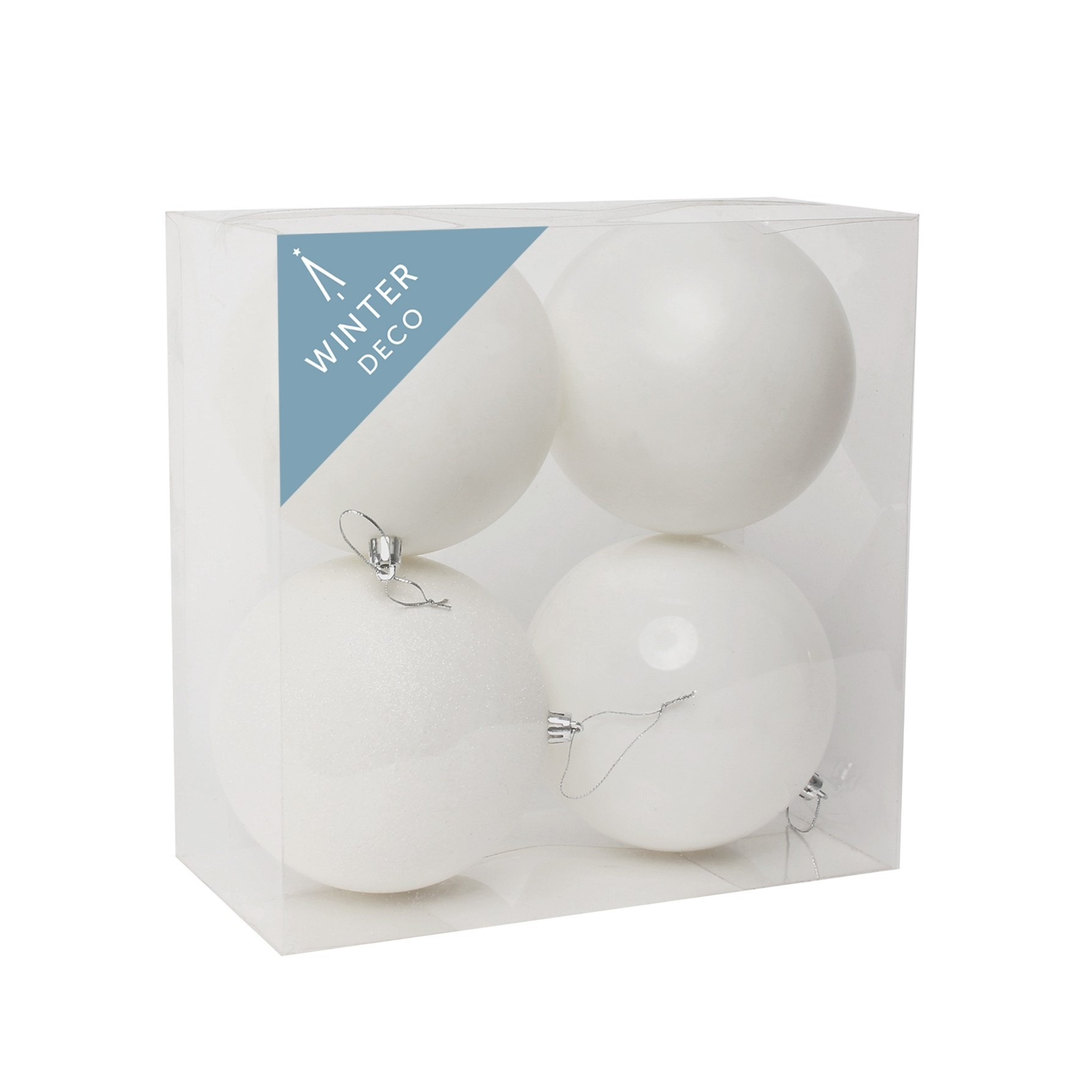 White Shatterproof Baubles (12cm) (4 pieces)