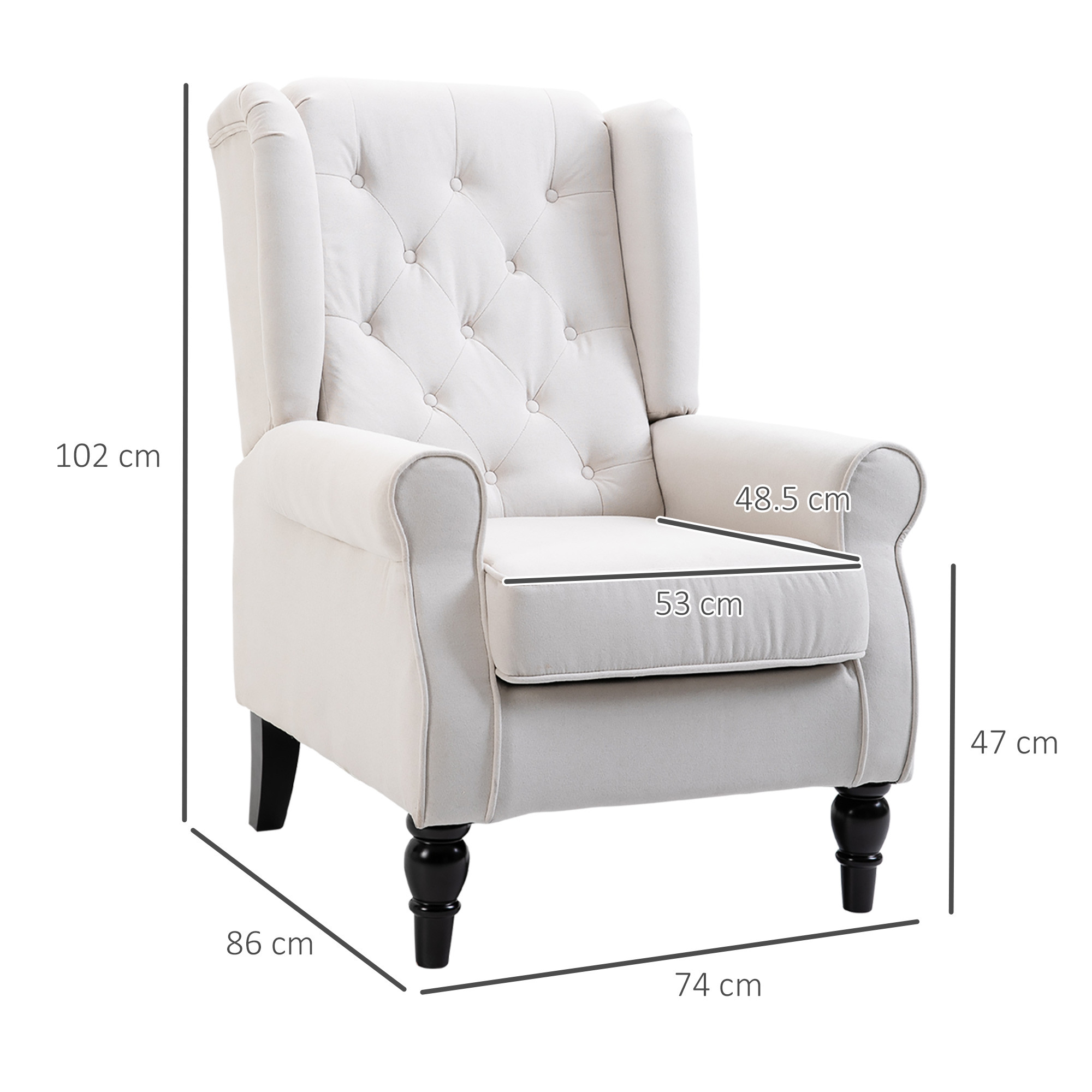 Wingback Accent Chair, Retro Upholstered Button Tufted Occasional Chair for Living Room and Bedroom, Cream White