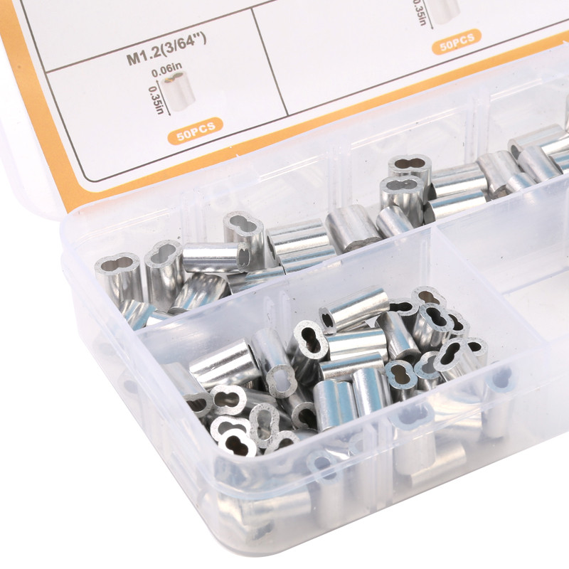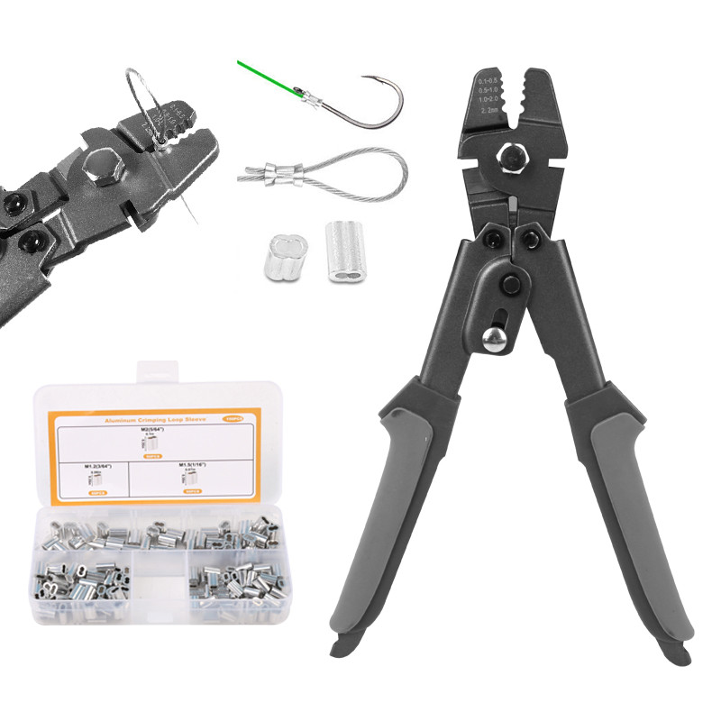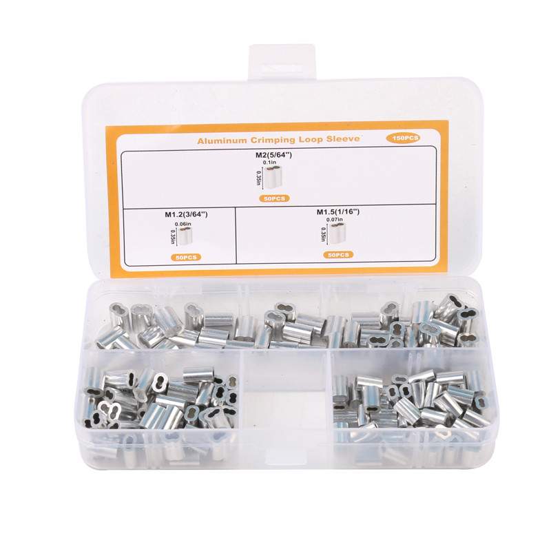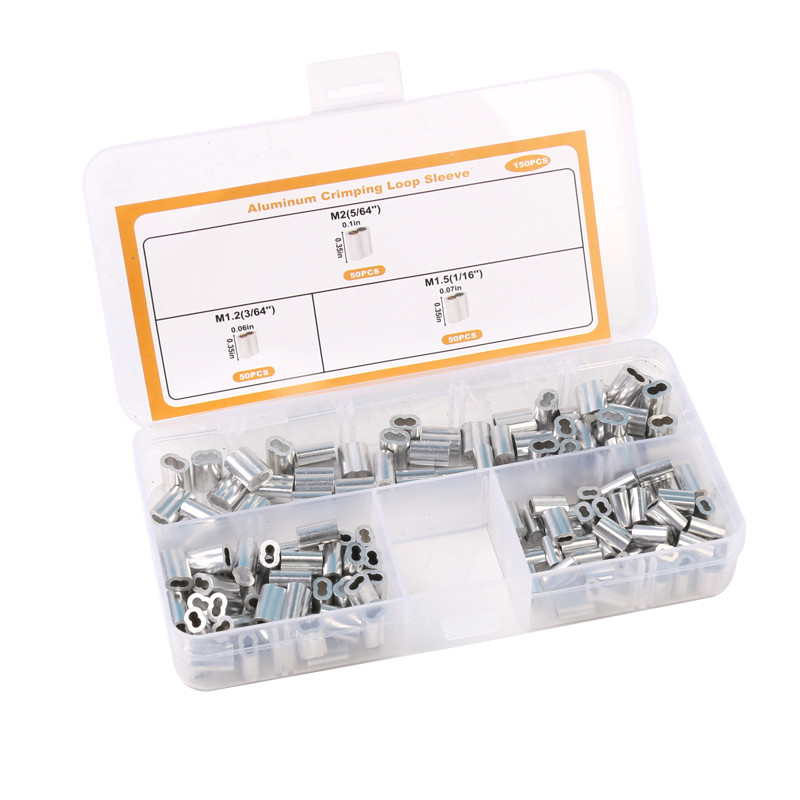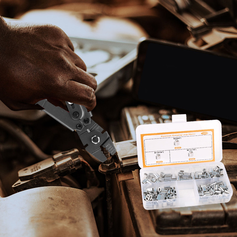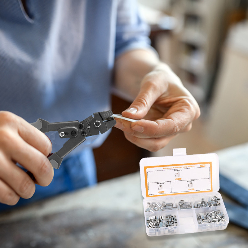 Wire Rope Crimping Tool with 150 Pcs 3 Size Double Barrel Ferrule Crimping Loop Sleeve Kit.