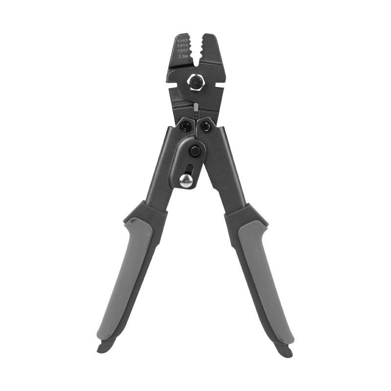 - Crimping tool with non-slip grips and self-locking mechanism design makes it easier to provide optimum pressure.