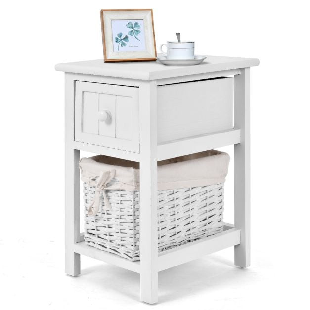 Spacious Storage Space: Equipped with 1 drawer and 1 basket drawer, this 2 tiers wood nightstand will help you to keep all your night-time essentials in arm's reach. Moreover, the cute straw basket on the bottom shelf provides additional storage.