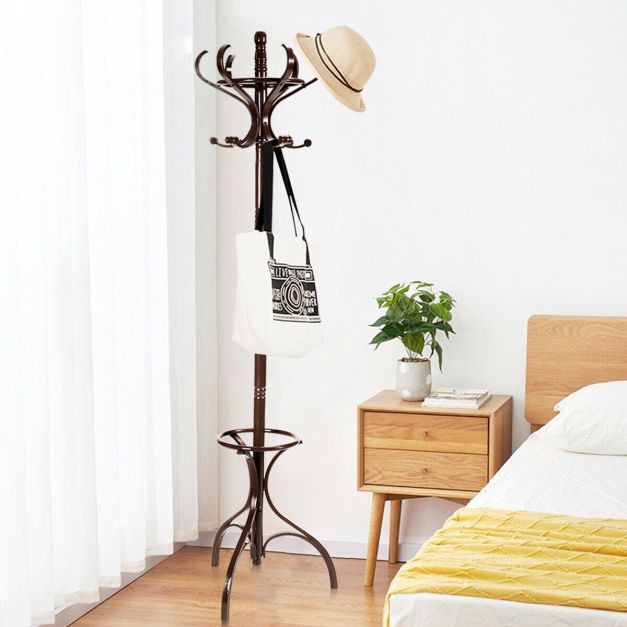 - Strong Storage with Multifunction Design: There are an umbrella holder, 6 clothes hooks and 6 pants hooks equipped on the coat rack, which provide an easy way to hanging everyday jackets, hats, umbrellas and so on. It creates extra storage space and will be a great partner to make your room organized.