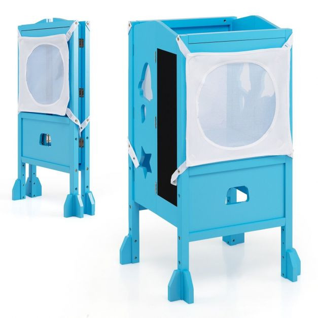 Designed with 4-side safety rails, the step stool enables your kid to stand stably on it without falling over. The 2 safety nettings are simple to clip on or clip off according to your demands. The fixed feet on the bottom also highly improves the overall stability. Moreover, the round corner and edges won't hurt your little one. The height-adjustable design makes the step stool grow with your kid and satisfies more demands. With this standing tower, you little one can enjoy doing housework with you, which largely enhance the communication between kids and parents. Apart from that, the blackboard design on one side allows your kid to draw on it freely. When finishing using it, you can fold it for space-saving storage. If you are looking for such a product, do not hesitate to buy it!