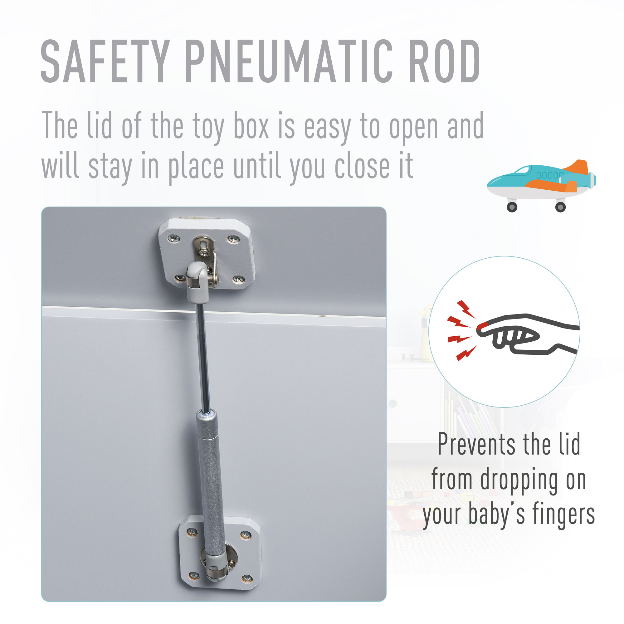 - SAFETY FEATURE: Lid is easy to open and will stay in place until closed. Prevents it falling down on fingers.
