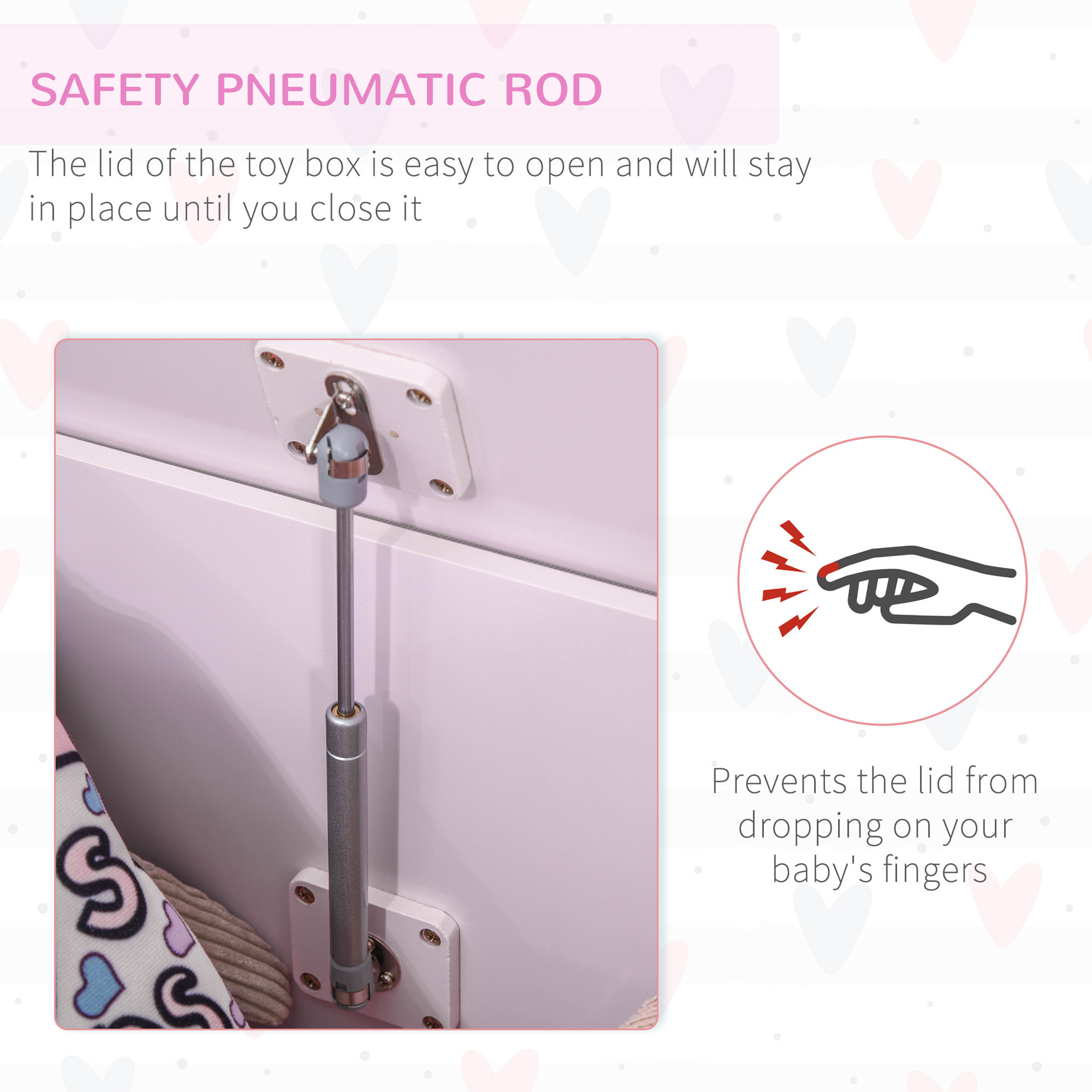 Wooden Kids Toy Box Children Storage Organizer Chest Safety Hinge Playroom Furniture Pink